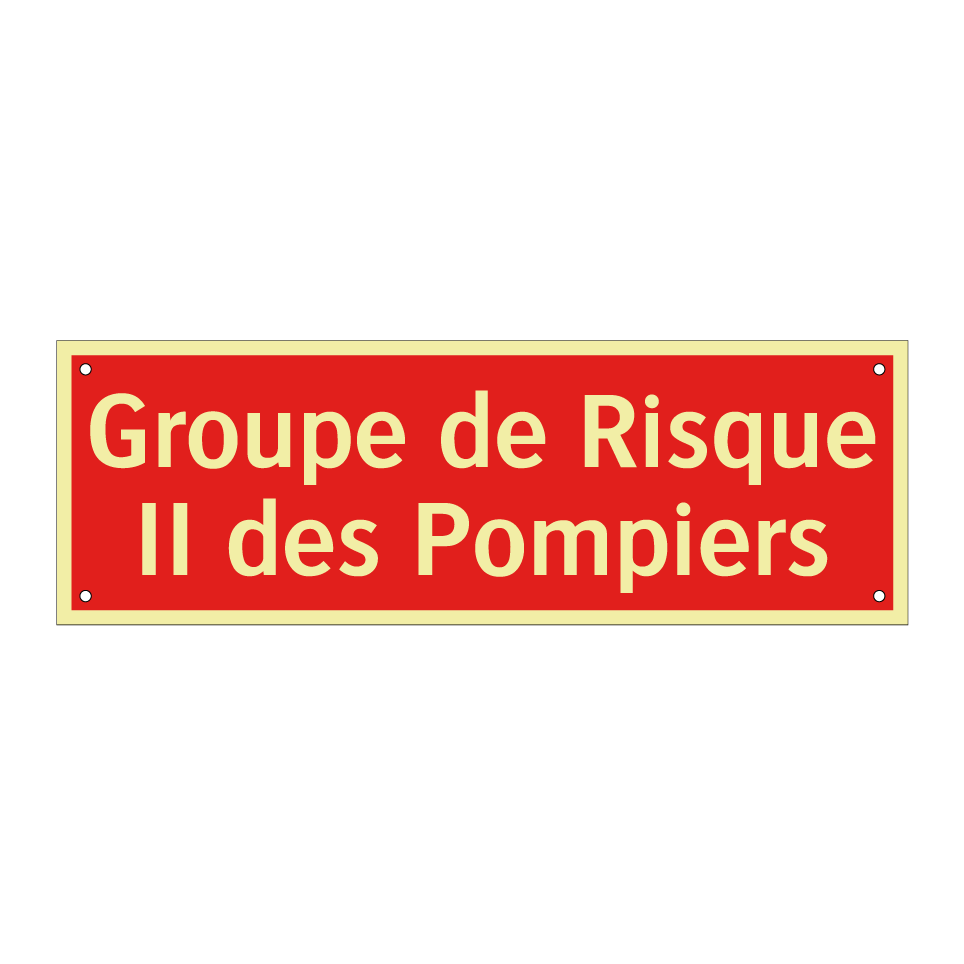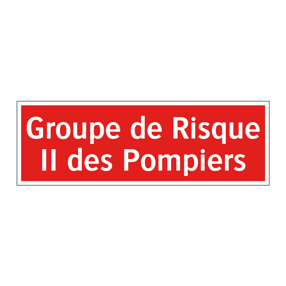 Panneau de signalisation incendie avec le texte Groupe de Risque II des Pompiers