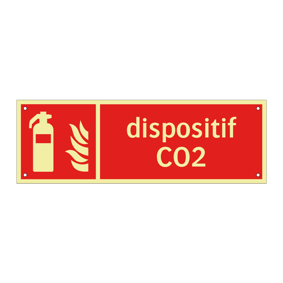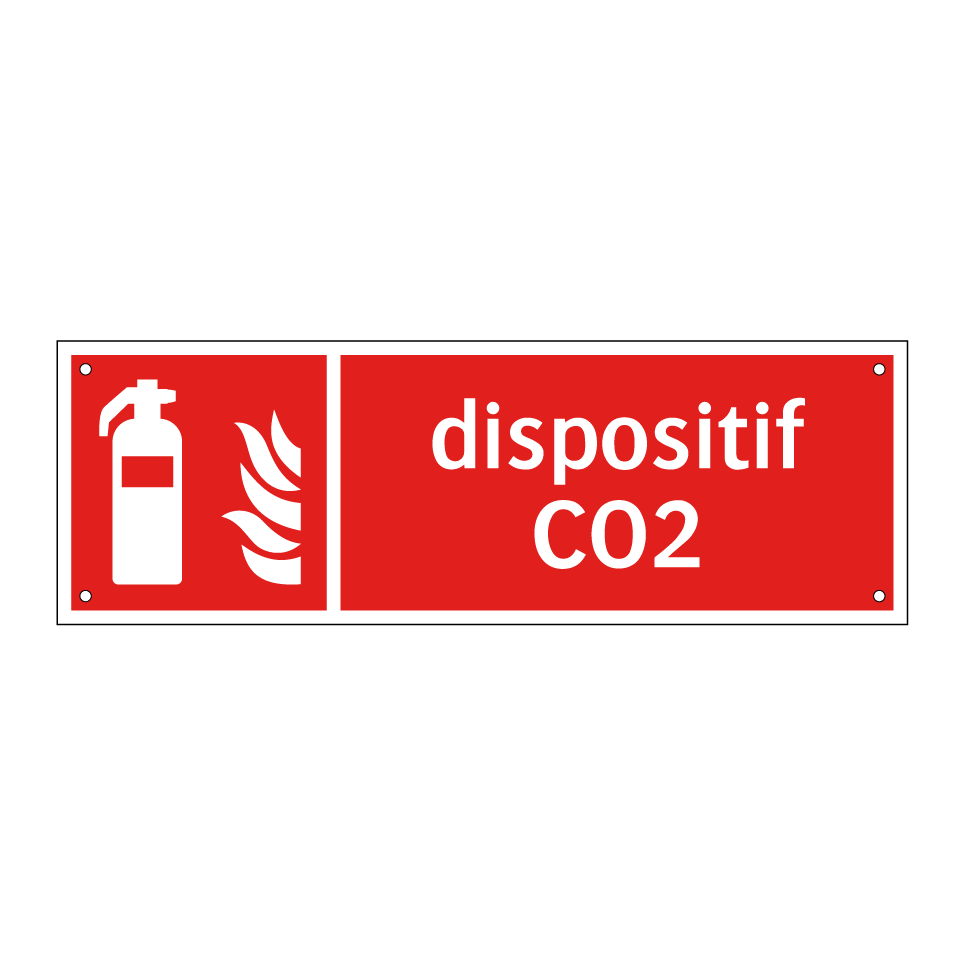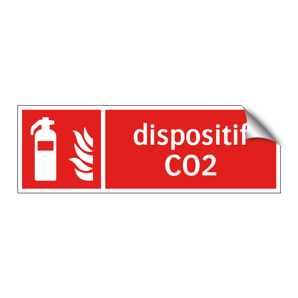Panneau incendie avec le texte dispositif CO2 et une symbolique claire