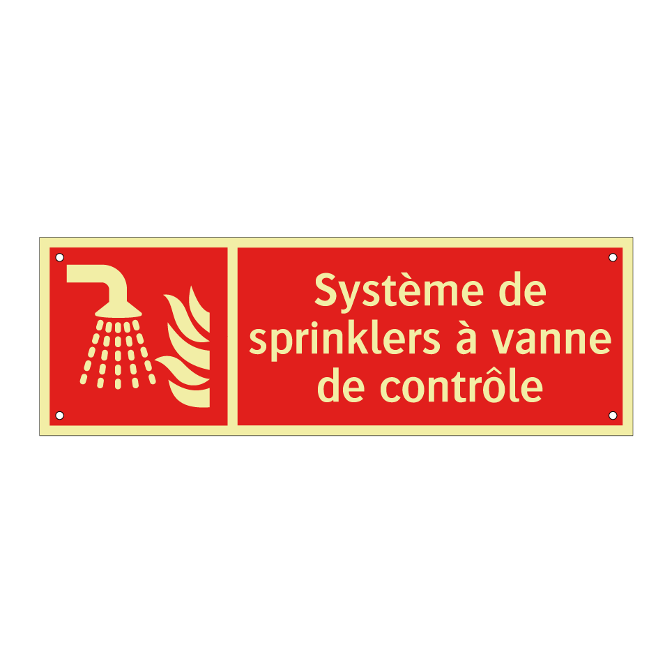 Panneau incendie avec le texte Système de sprinklers à vanne de contrôle et une symbolique claire