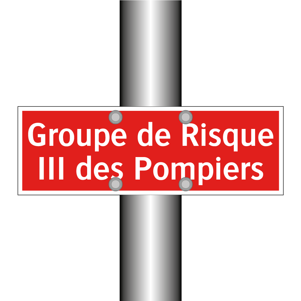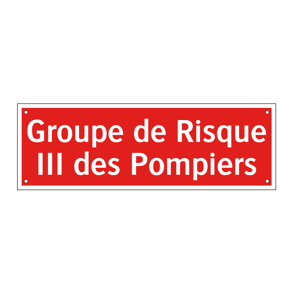 Panneau de signalisation incendie avec le texte Groupe de Risque III des Pompiers