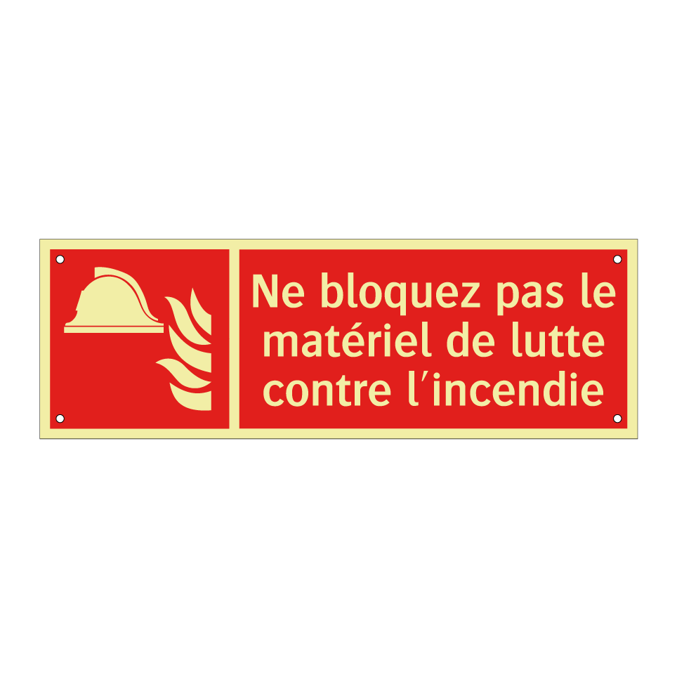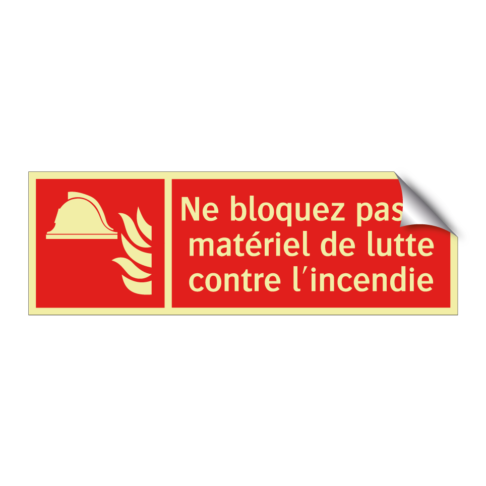 Panneau incendie avec le texte Ne bloquez pas le matériel de lutte contre l'incendie et une symbolique claire