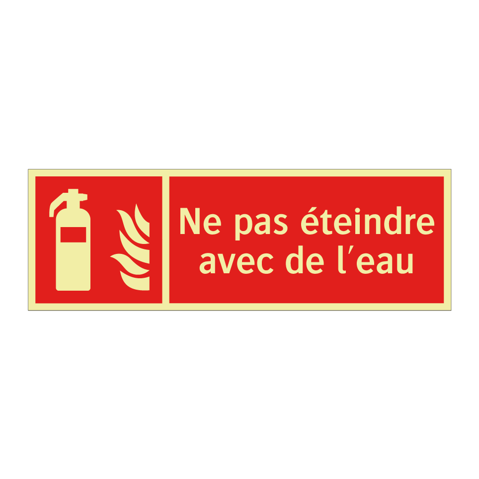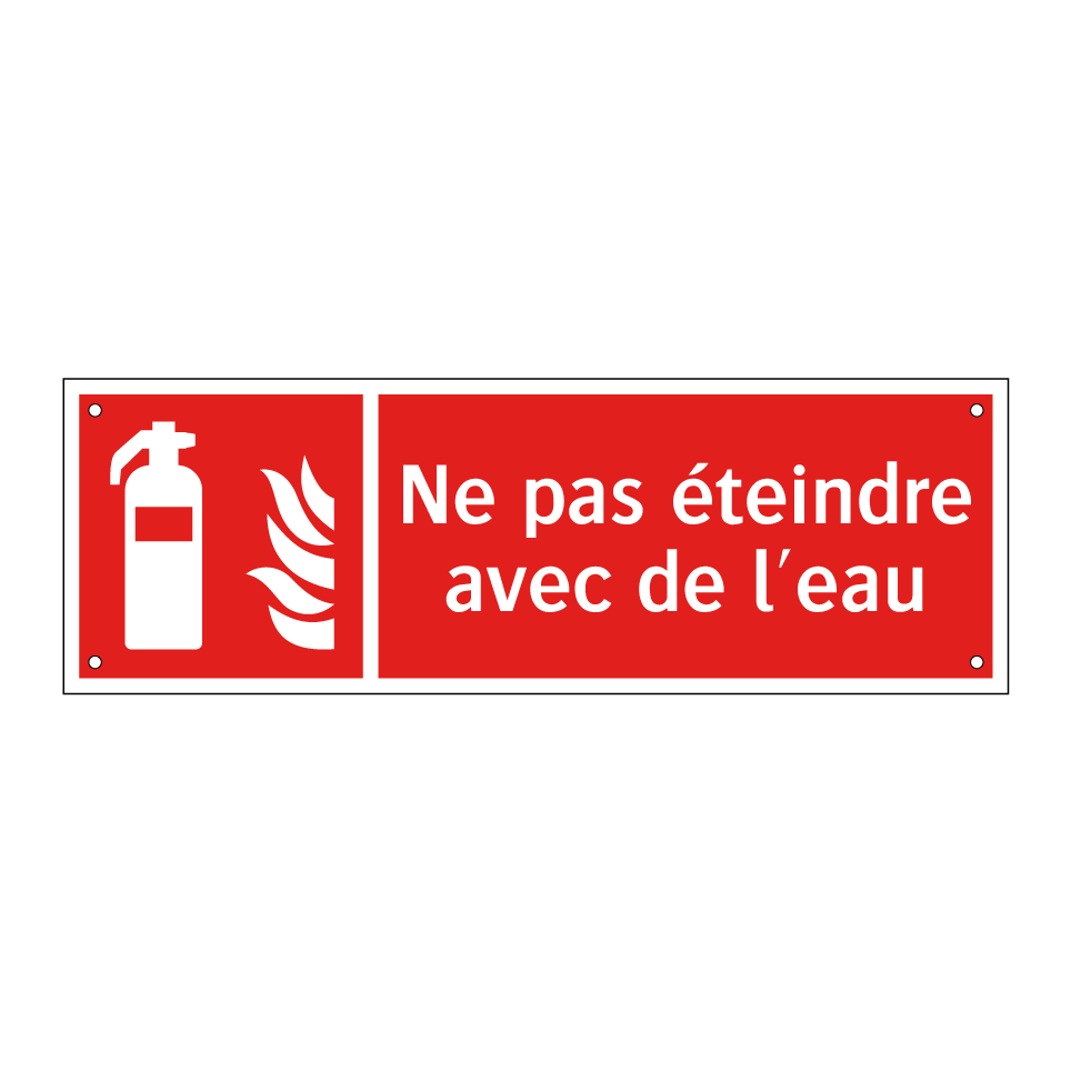 Panneau incendie avec le texte Ne pas éteindre avec de l'eau et une symbolique claire