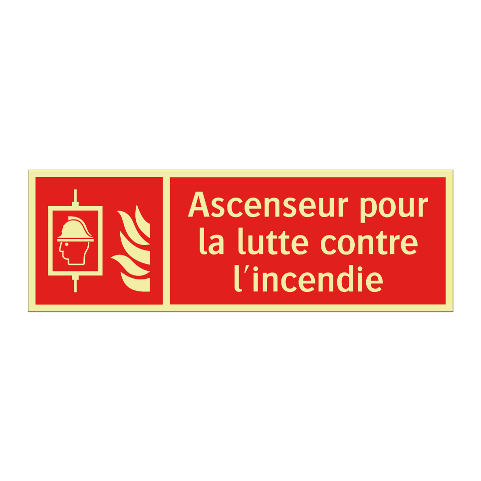 Panneau incendie avec le texte Ascenseur pour la lutte contre l'incendie et une symbolique claire