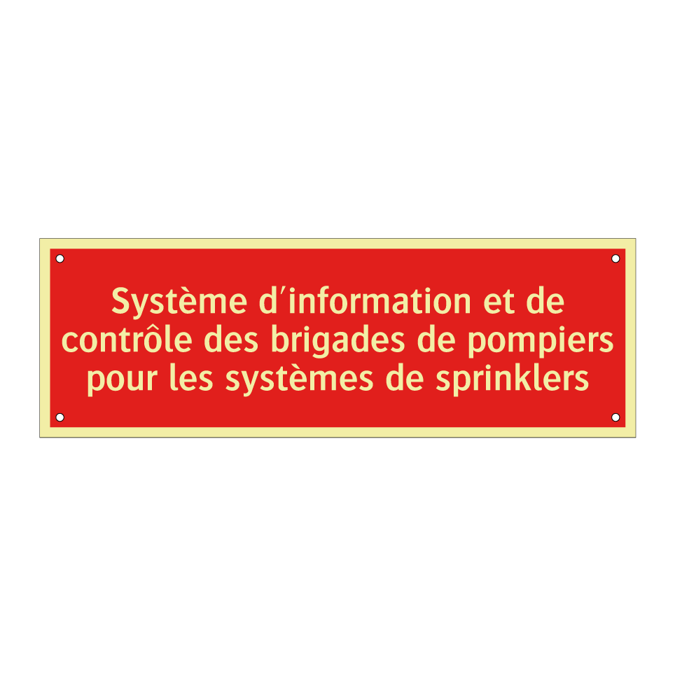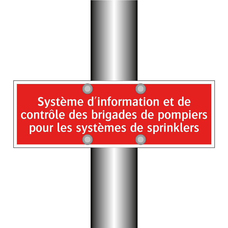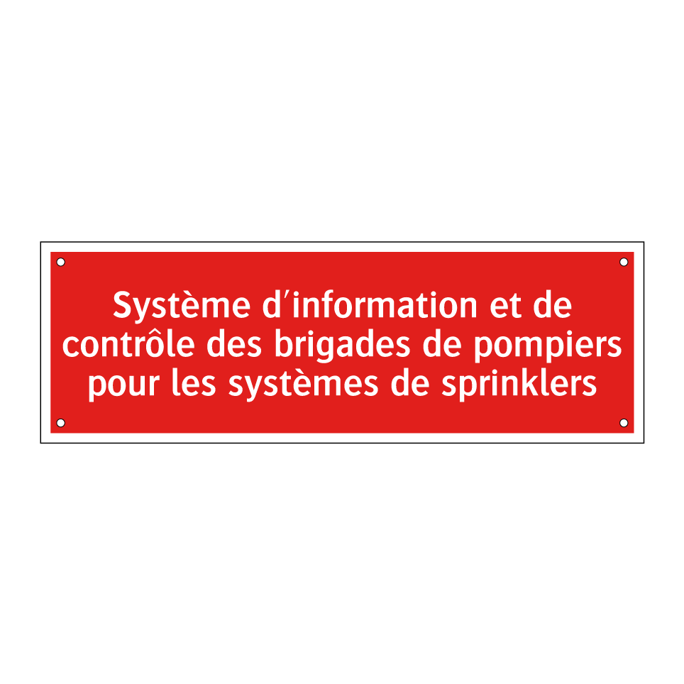 Panneau de signalisation incendie avec le texte Système d'information et de contrôle des brigades de pompiers pour les systèmes de sprinklers