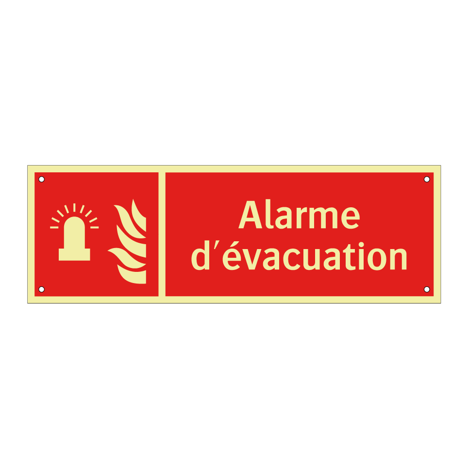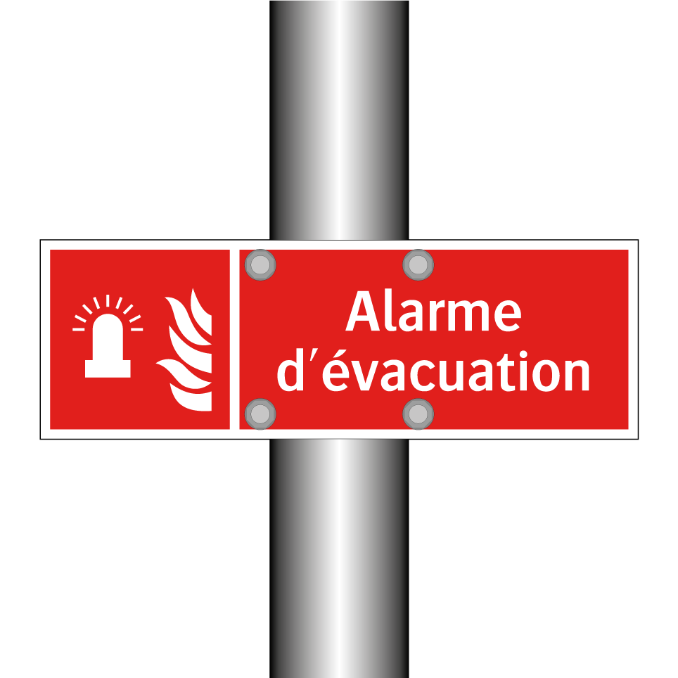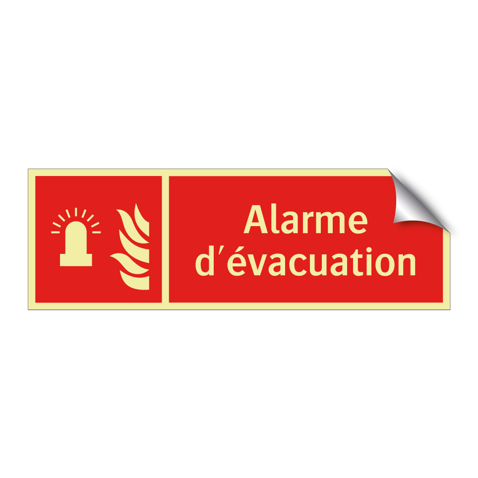 Panneau incendie avec le texte Alarme d'évacuation et une symbolique claire