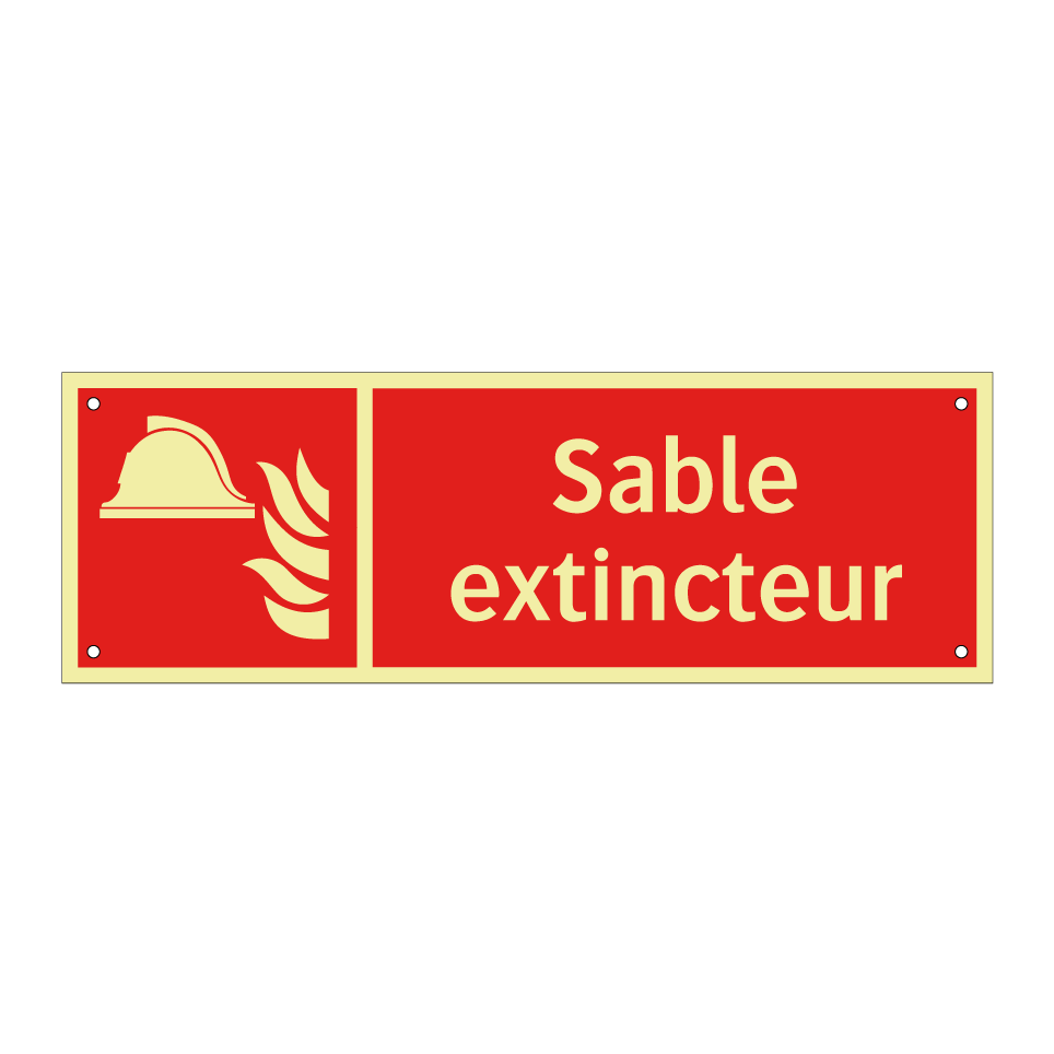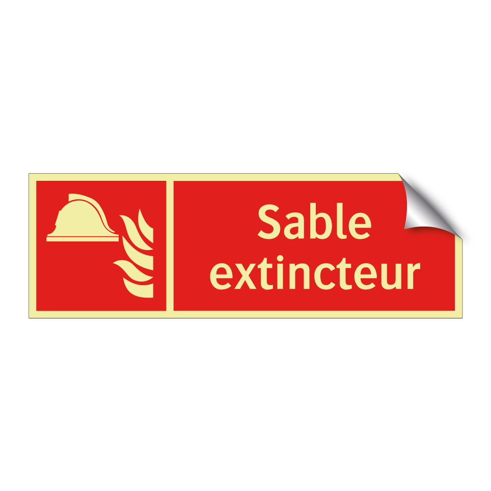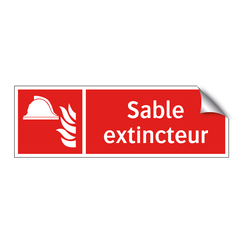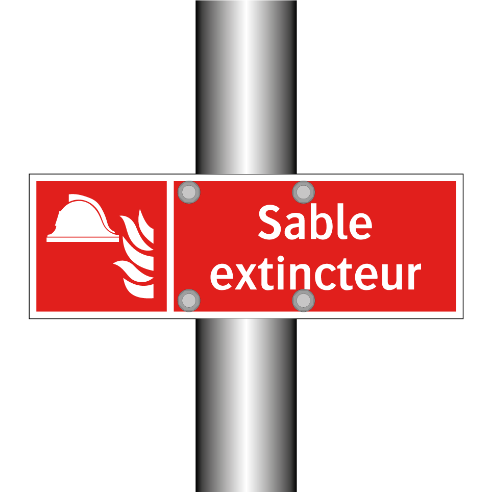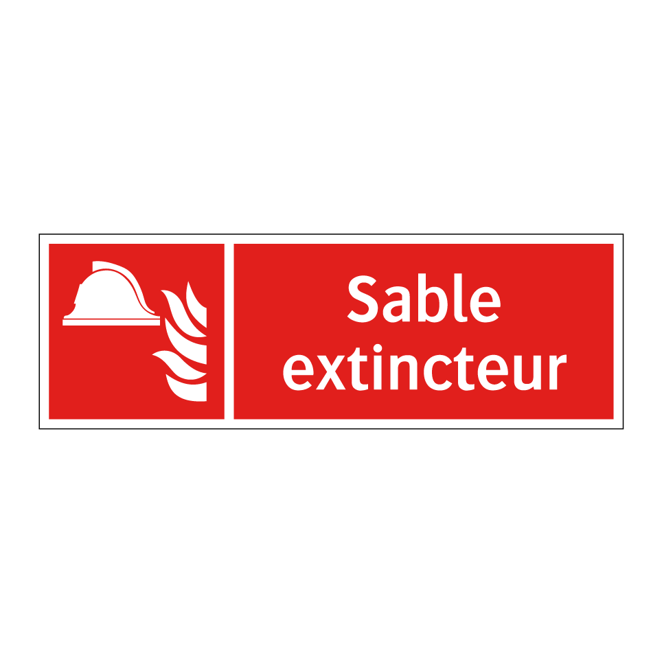 Panneau incendie avec le texte Sable extincteur et une symbolique claire