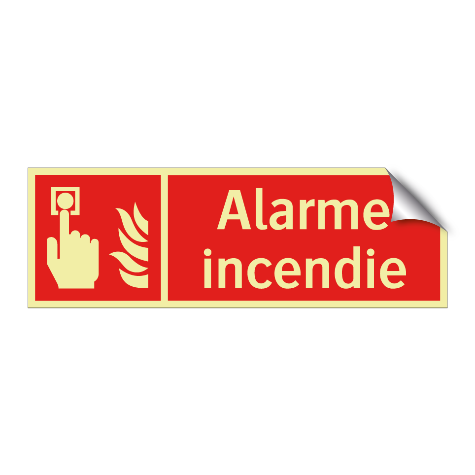 Panneau incendie avec le texte Alarme incendie et une symbolique claire