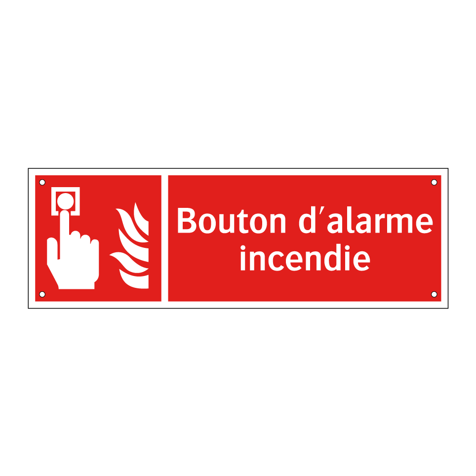 Panneau incendie avec le texte Bouton d'alarme incendie et une symbolique claire