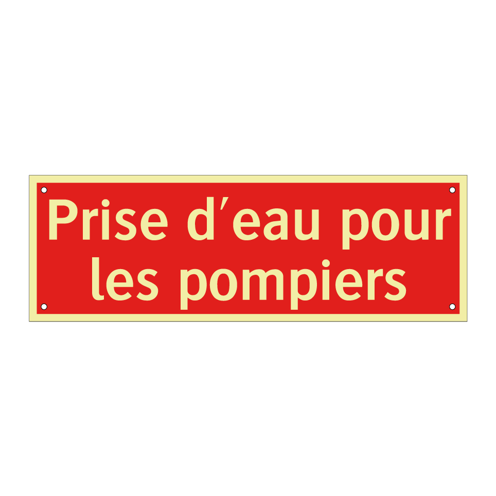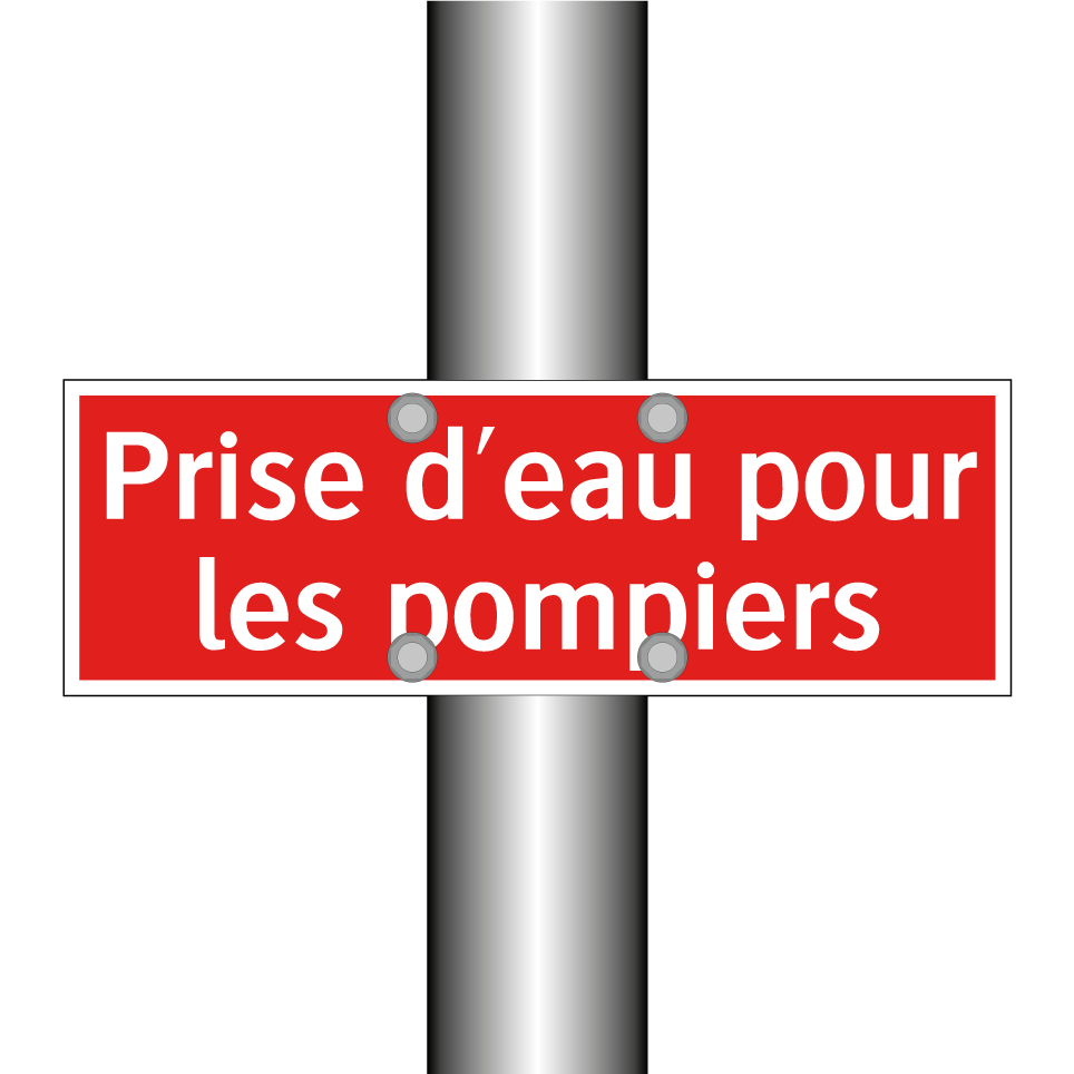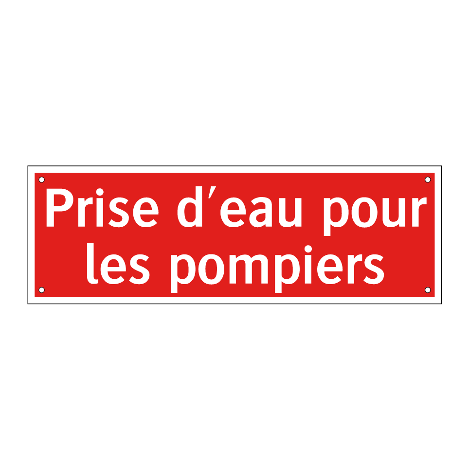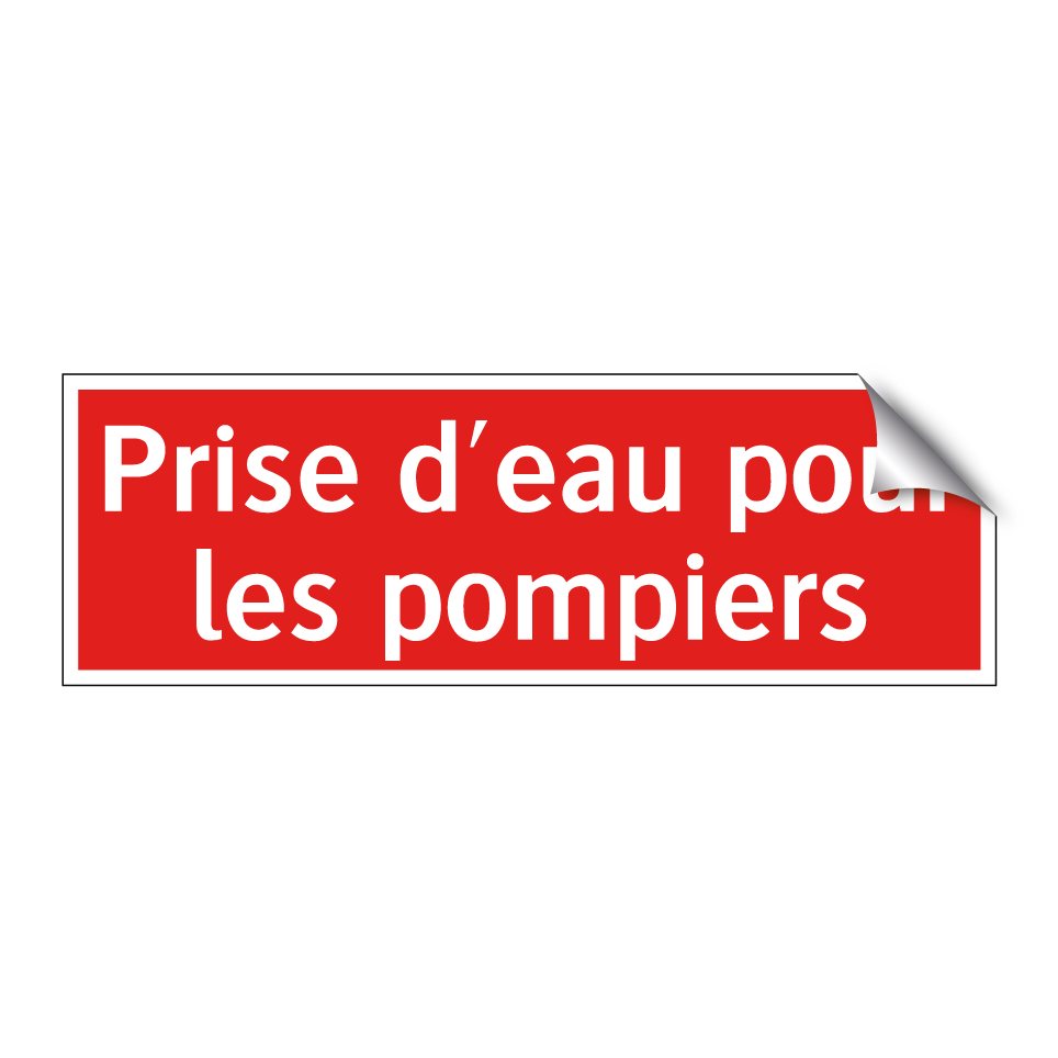Panneau de signalisation incendie avec le texte Prise d'eau pour les pompiers