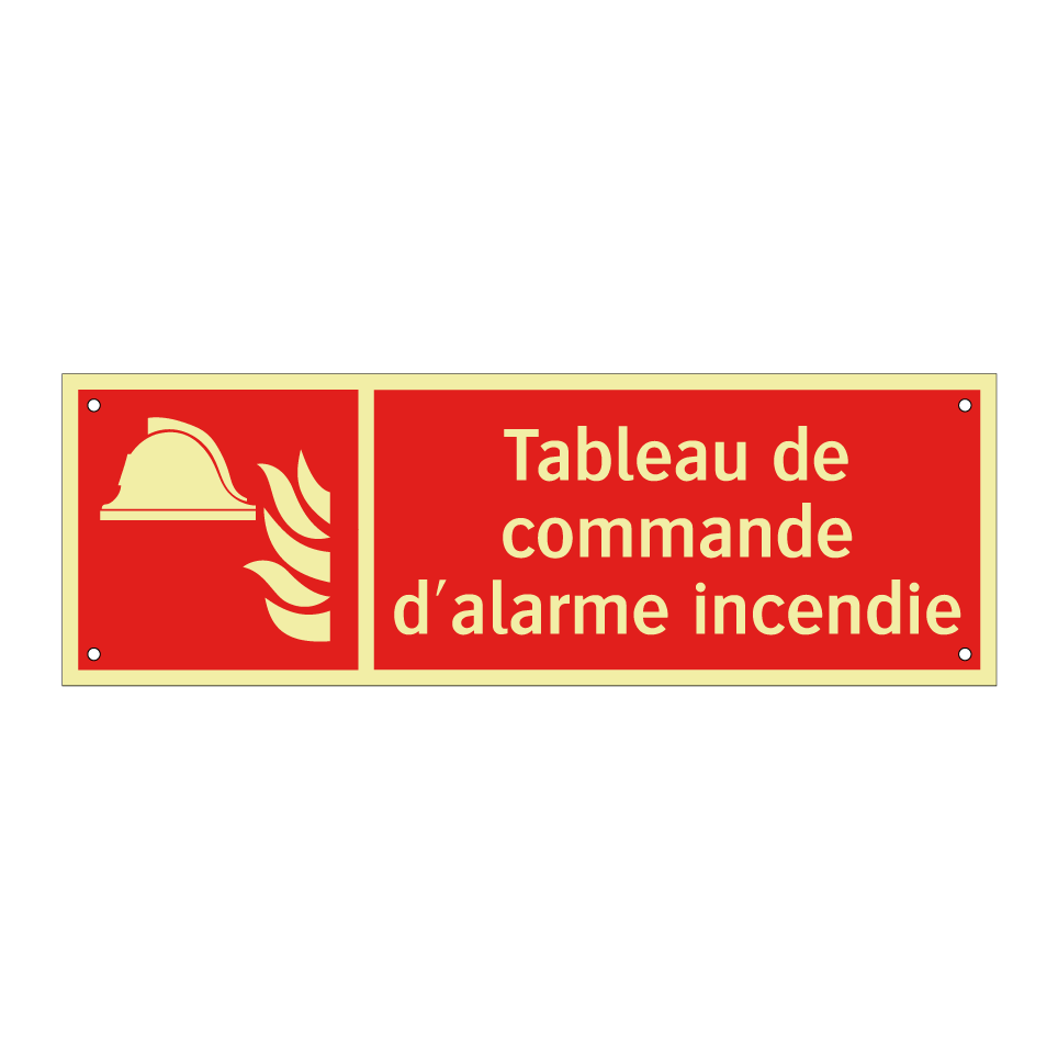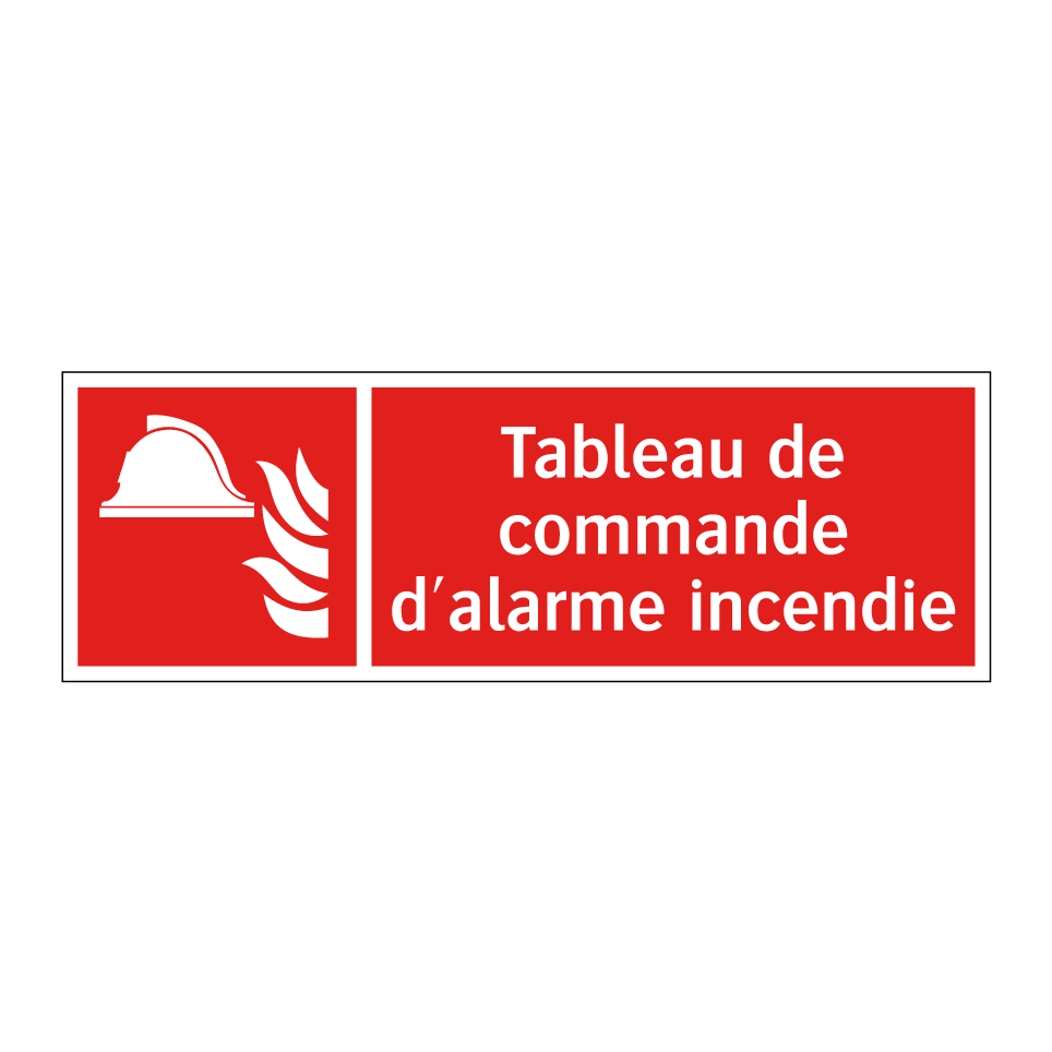 Panneau incendie avec le texte Tableau de commande d'alarme incendie et une symbolique claire