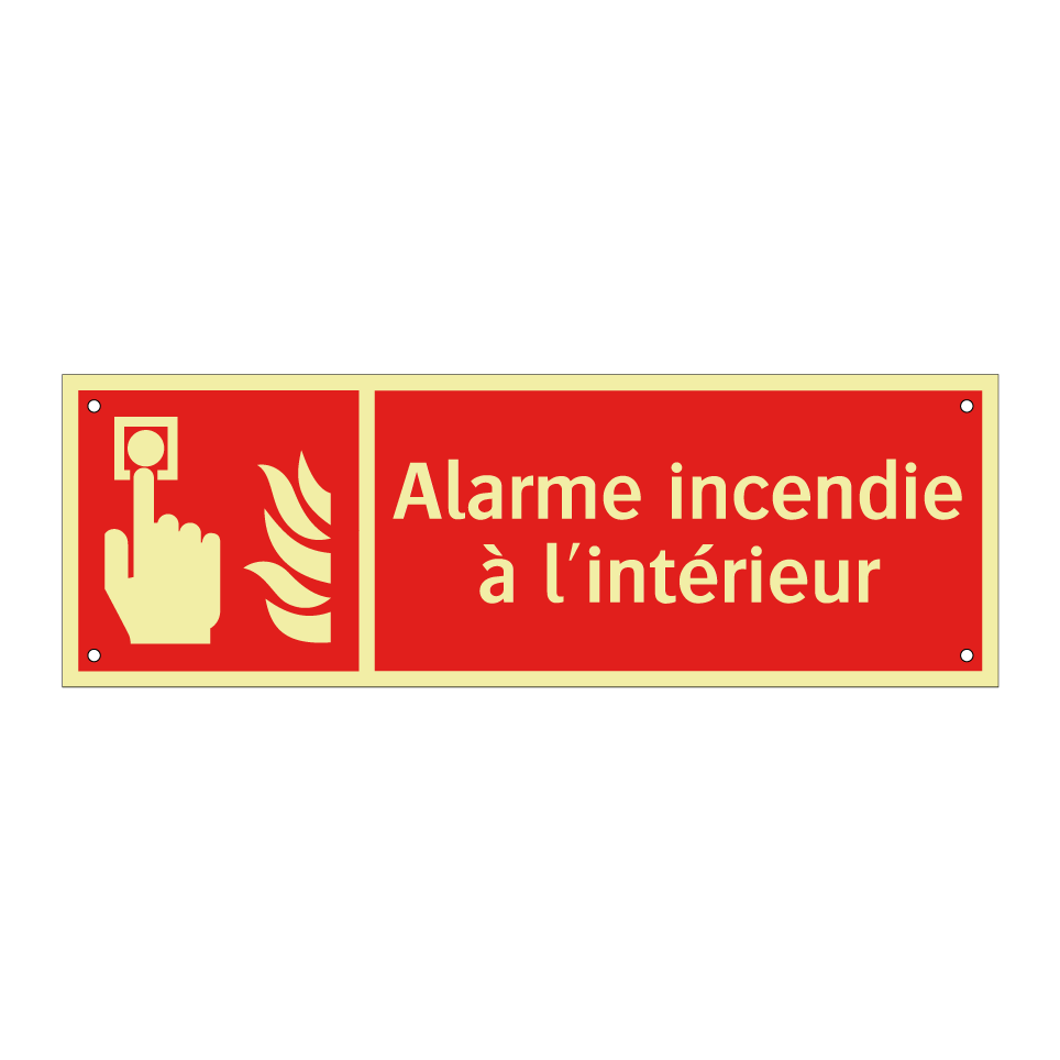 Panneau incendie avec le texte Alarme incendie à l'intérieur et une symbolique claire