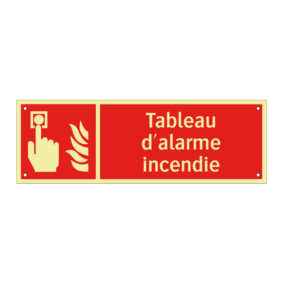 Panneau incendie avec le texte Tableau d'alarme incendie et une symbolique claire