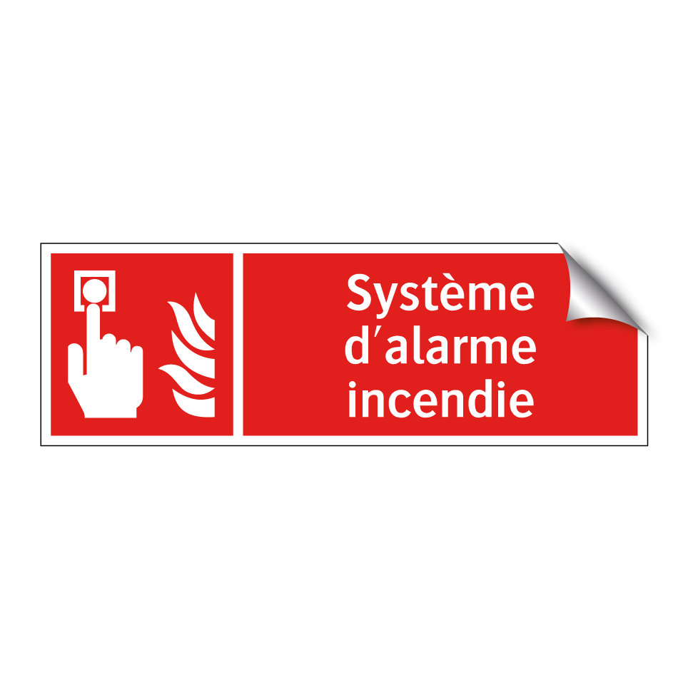 Panneau incendie avec le texte Système d'alarme incendie et une symbolique claire