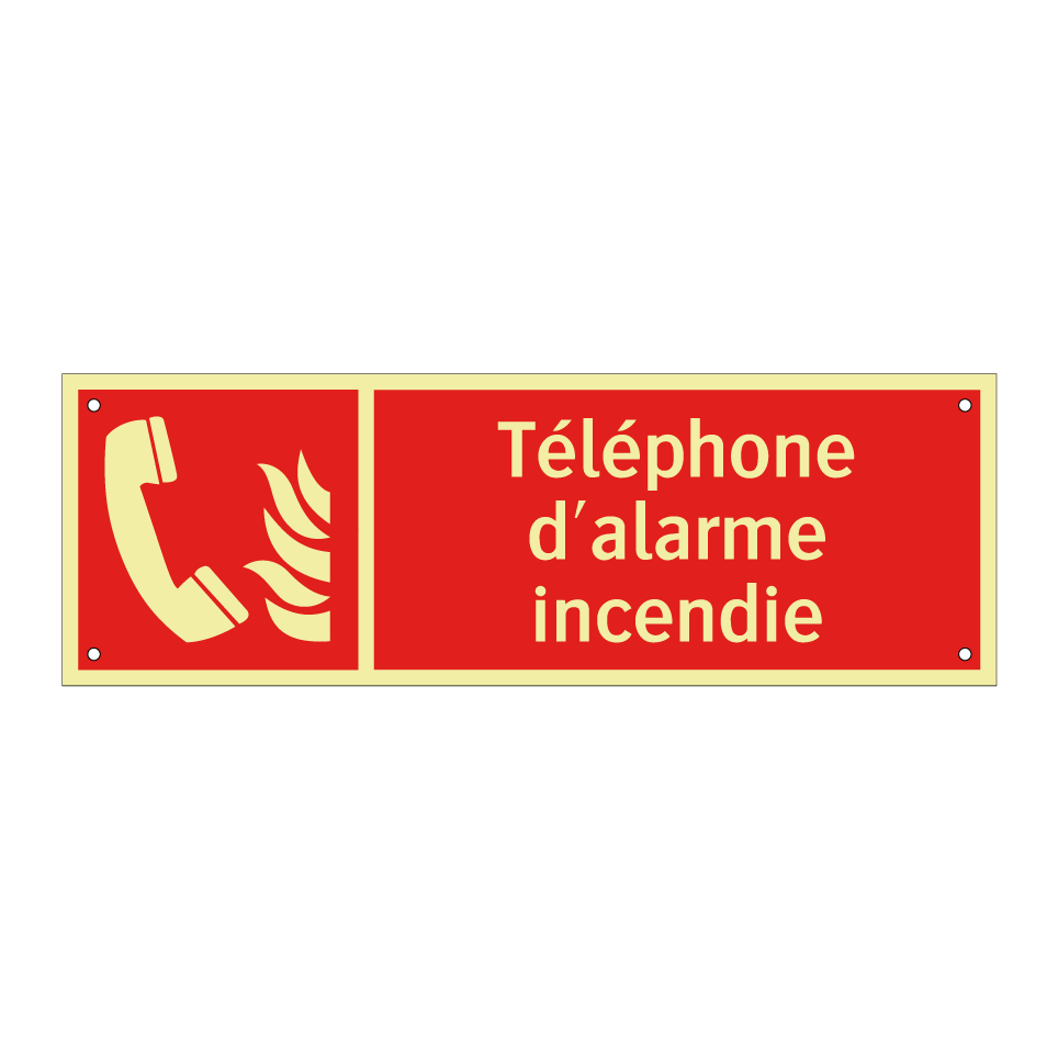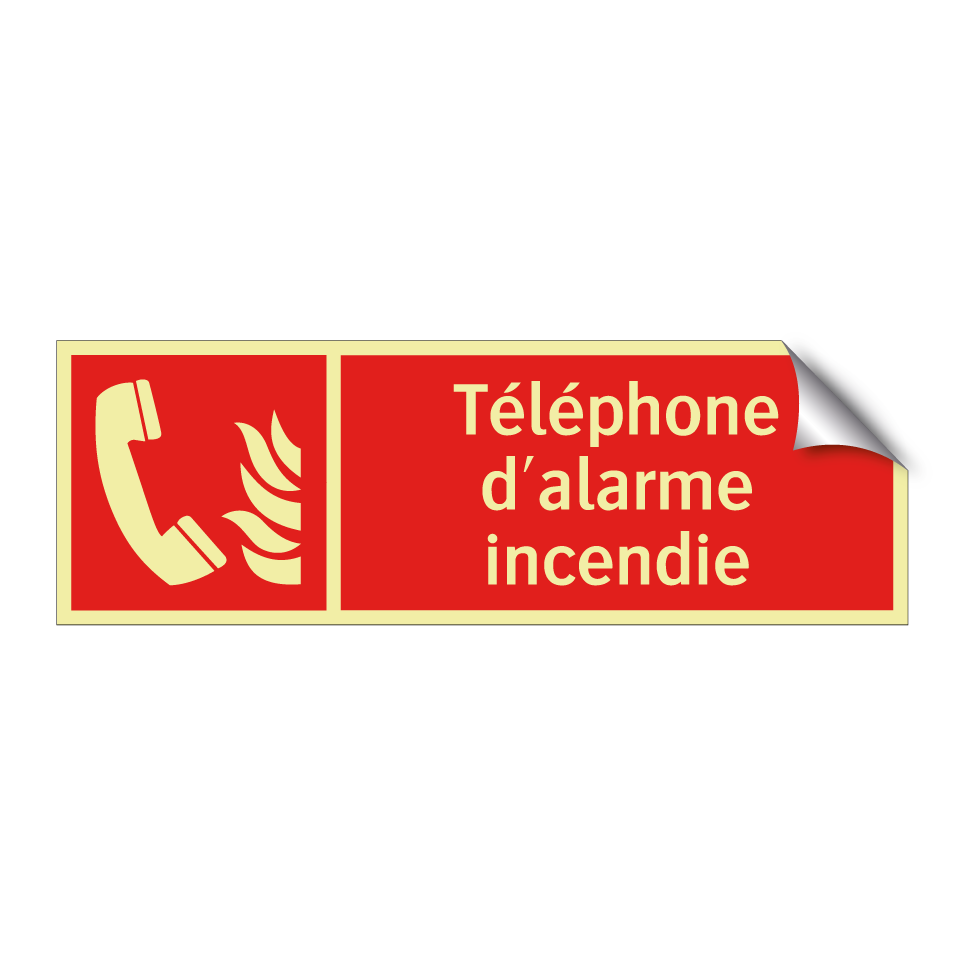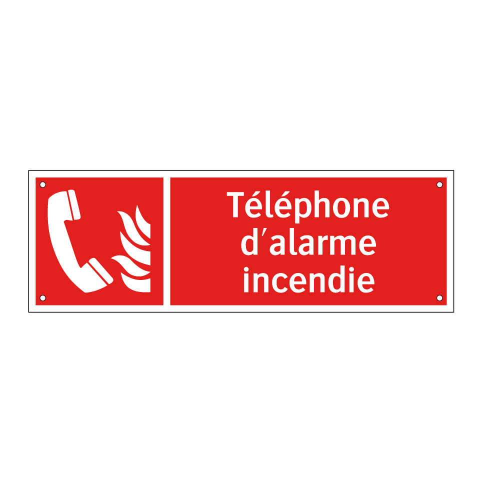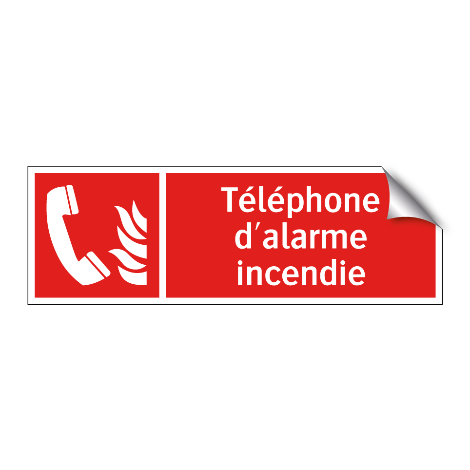 Panneau incendie avec le texte Téléphone d'alarme incendie et une symbolique claire