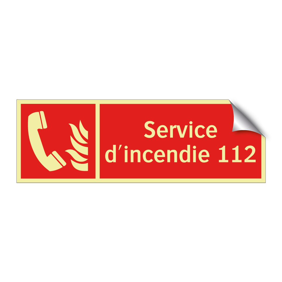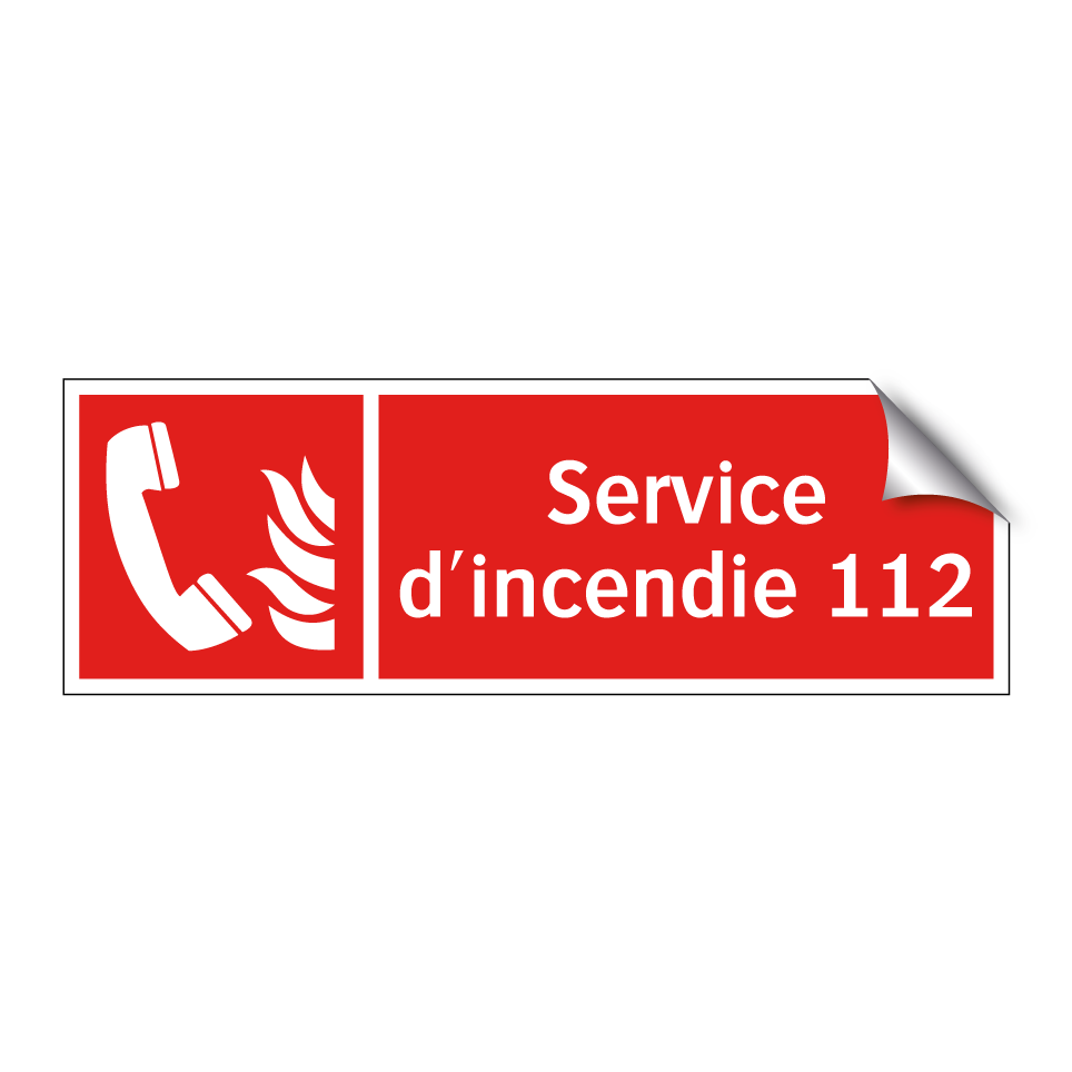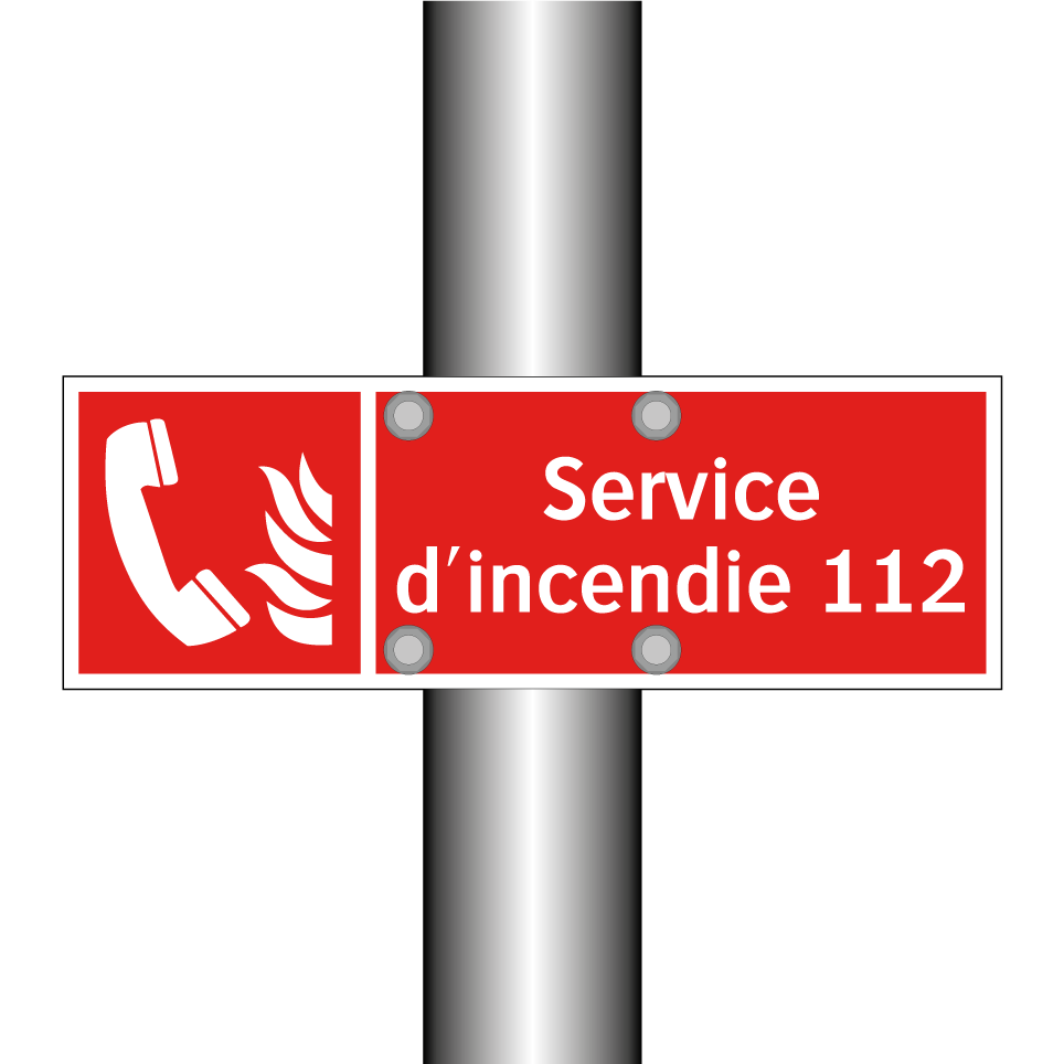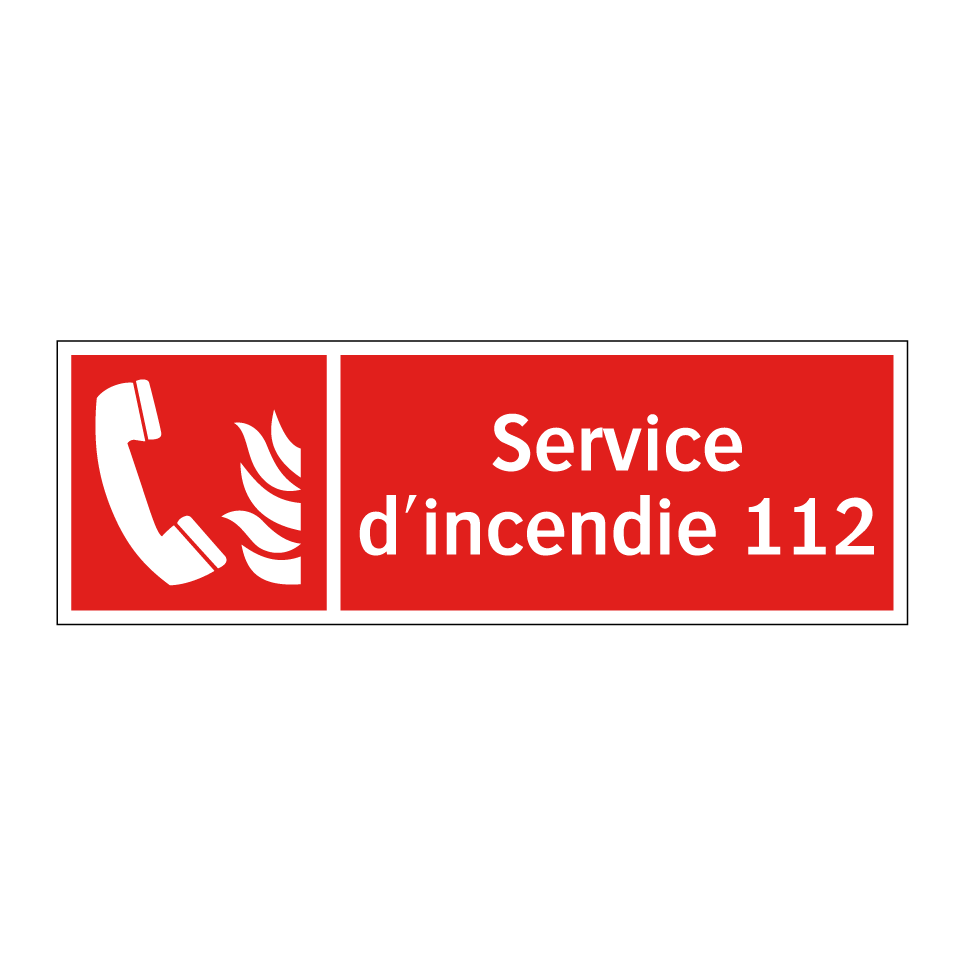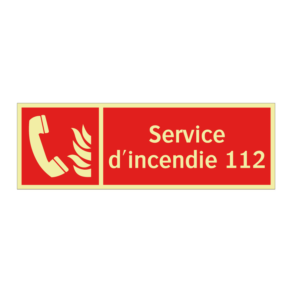 Panneau incendie avec le texte Service d'incendie 112 et une symbolique claire