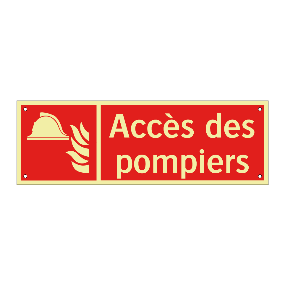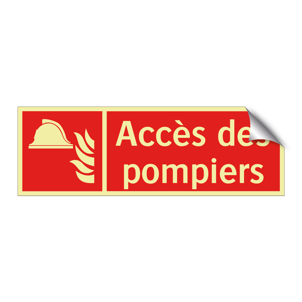 Panneau incendie avec le texte Accès des pompiers et une symbolique claire