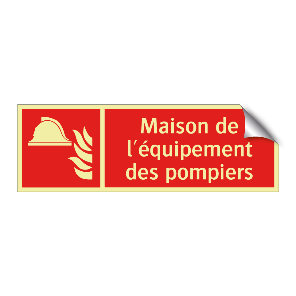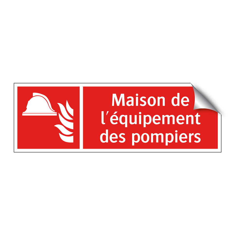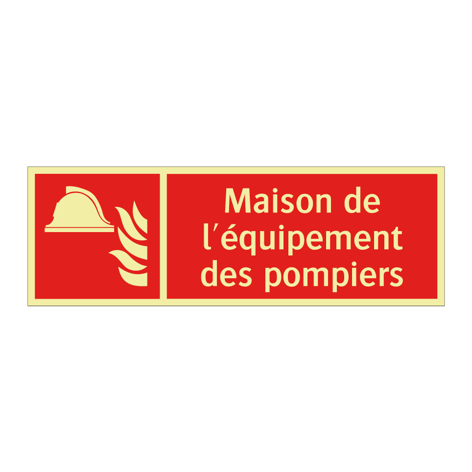 Panneau incendie avec le texte Maison de l'équipement des pompiers et une symbolique claire