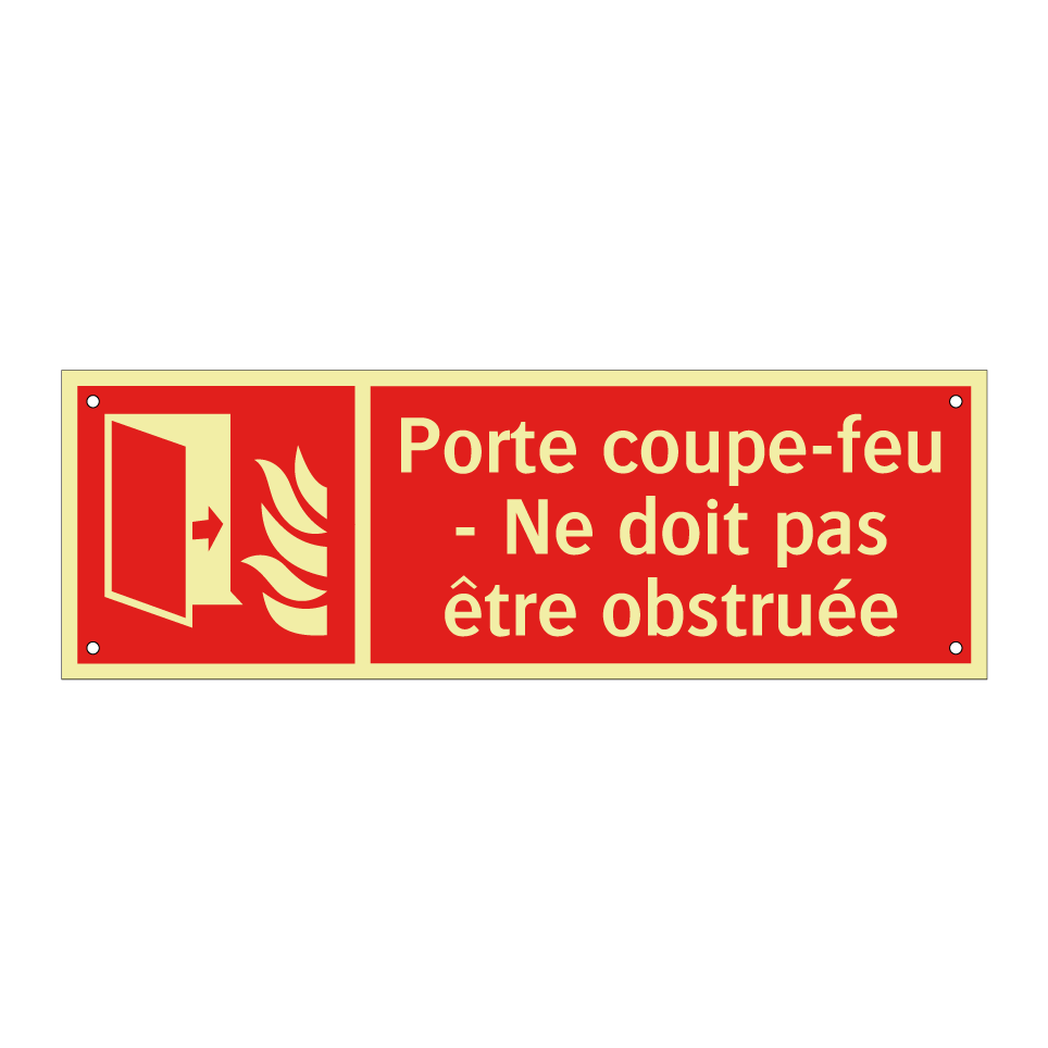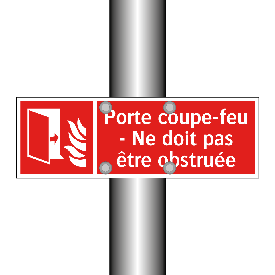 Panneau incendie avec le texte Porte coupe-feu - Ne doit pas être obstruée et une symbolique claire