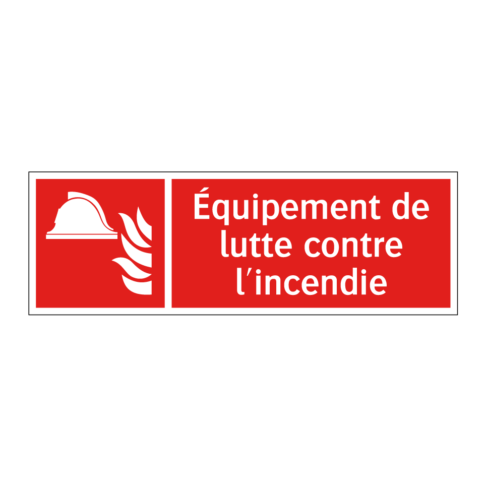 Panneau incendie avec le texte Équipement de lutte contre l'incendie et une symbolique claire