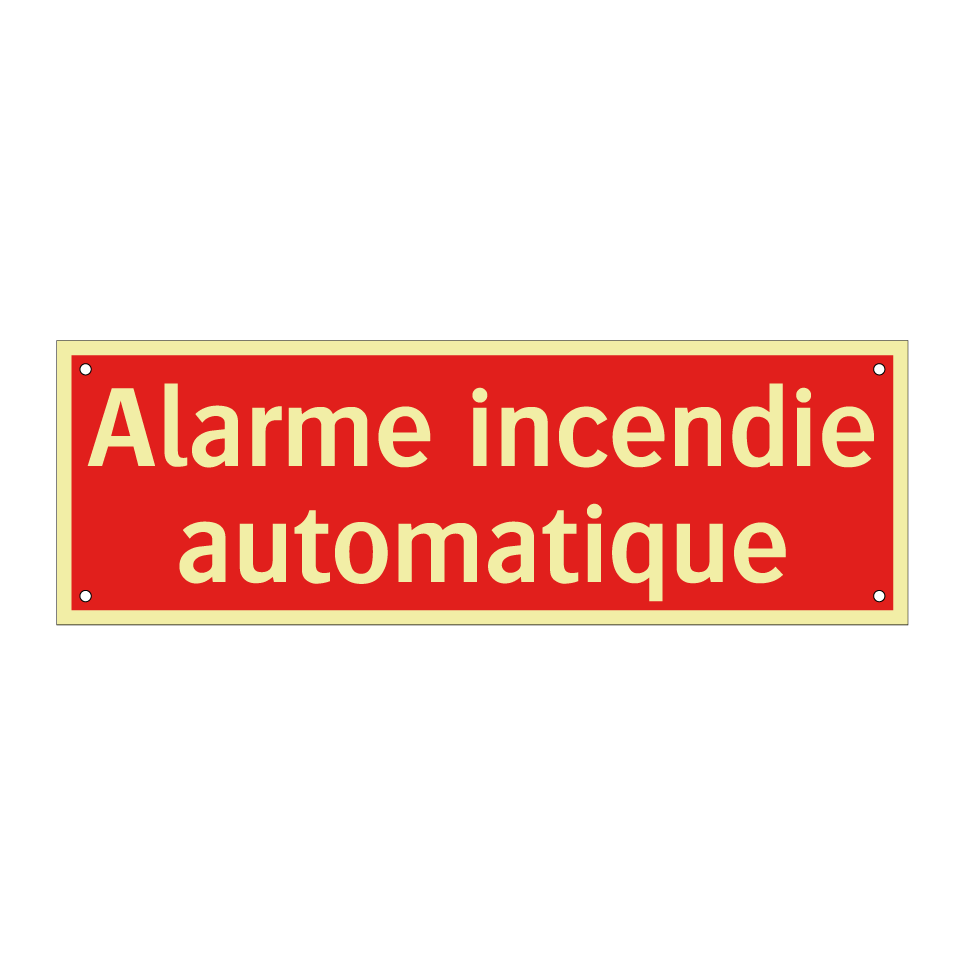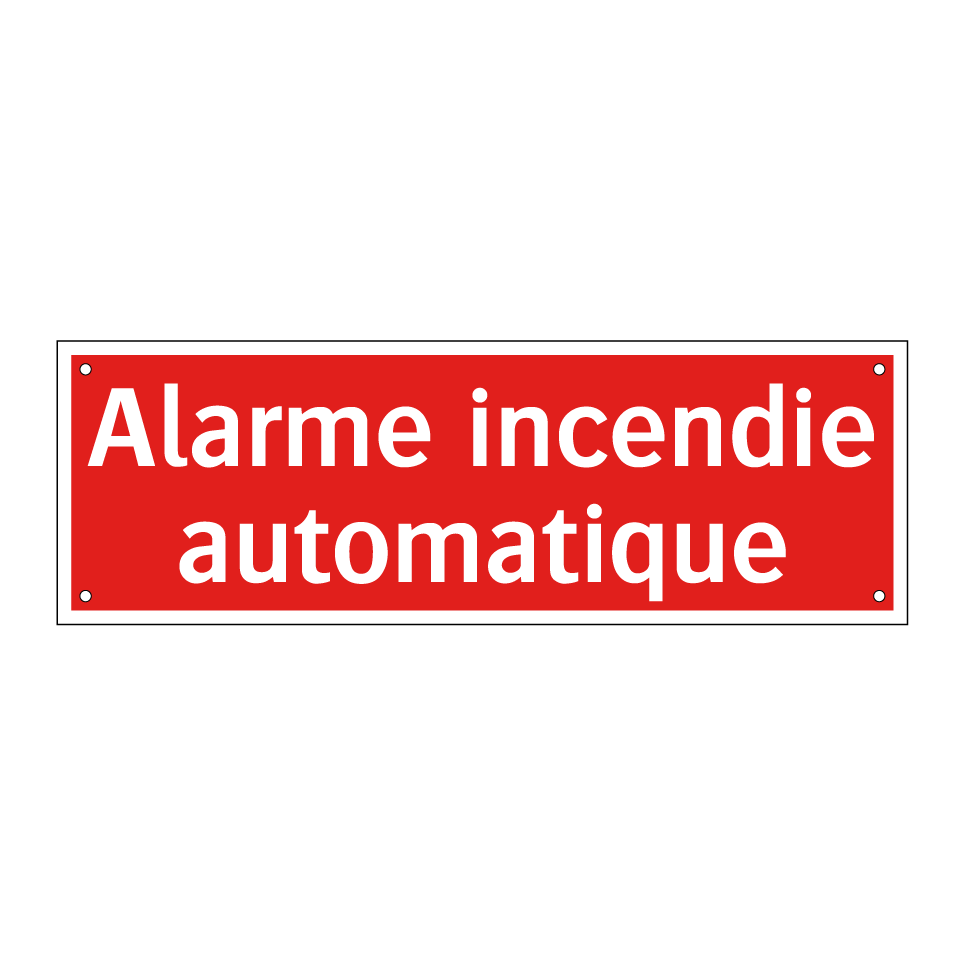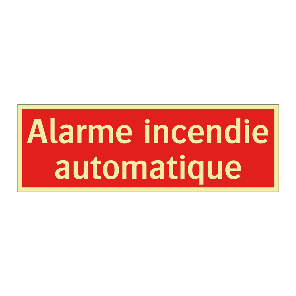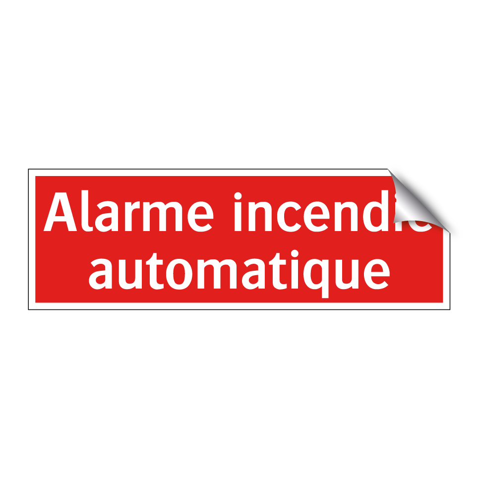 Panneau de signalisation incendie avec le texte Alarme incendie automatique