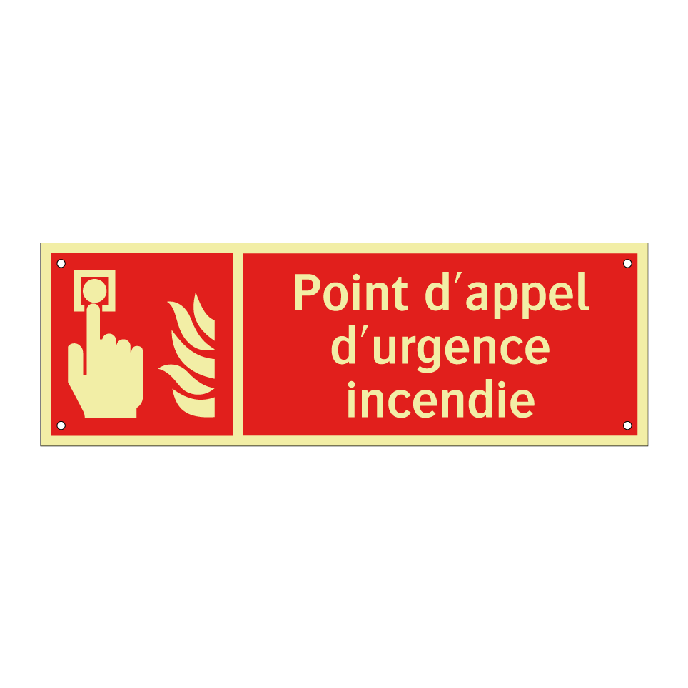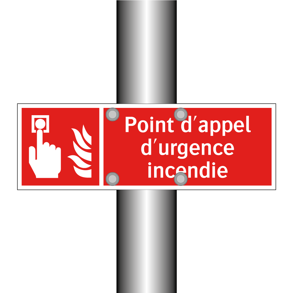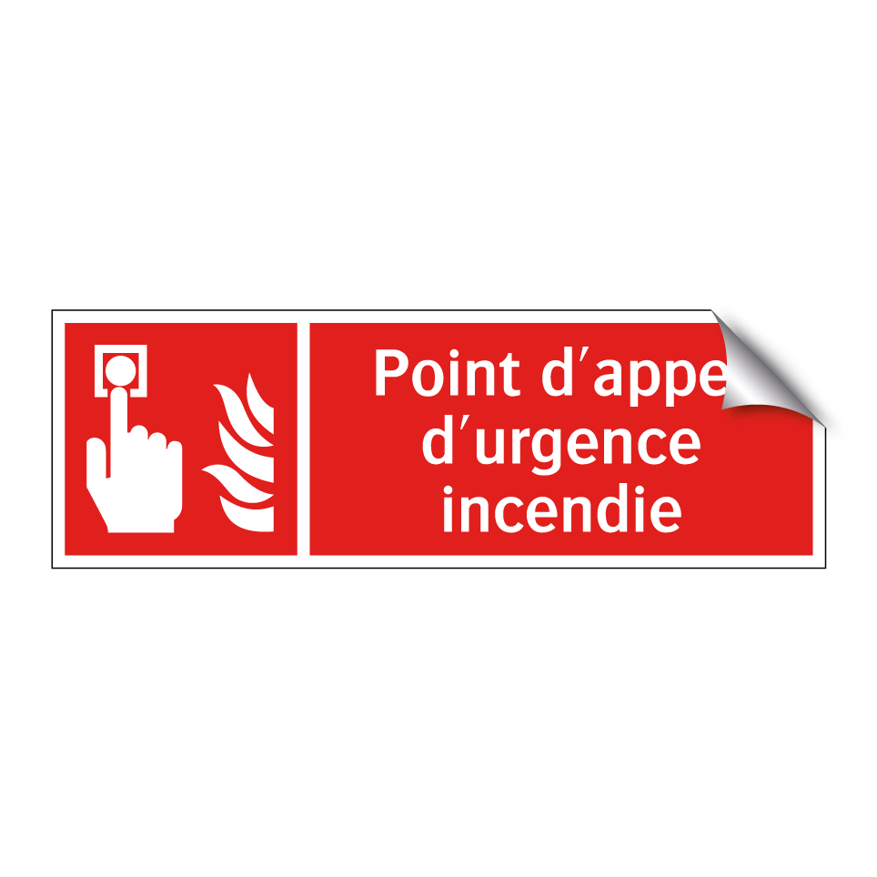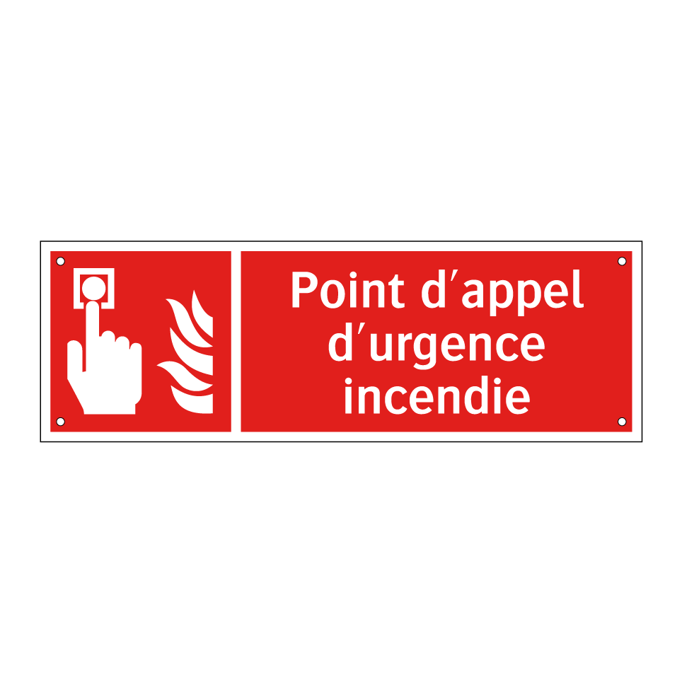 Panneau incendie avec le texte Point d'appel d'urgence incendie et une symbolique claire