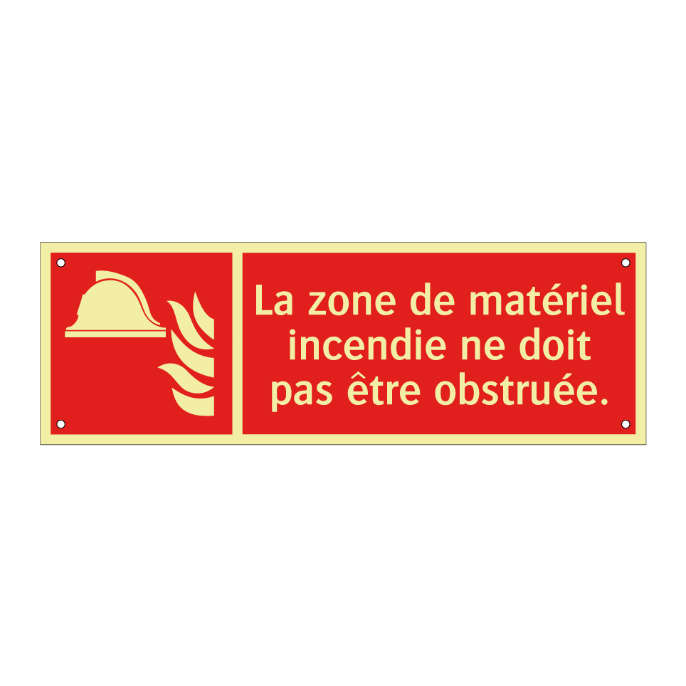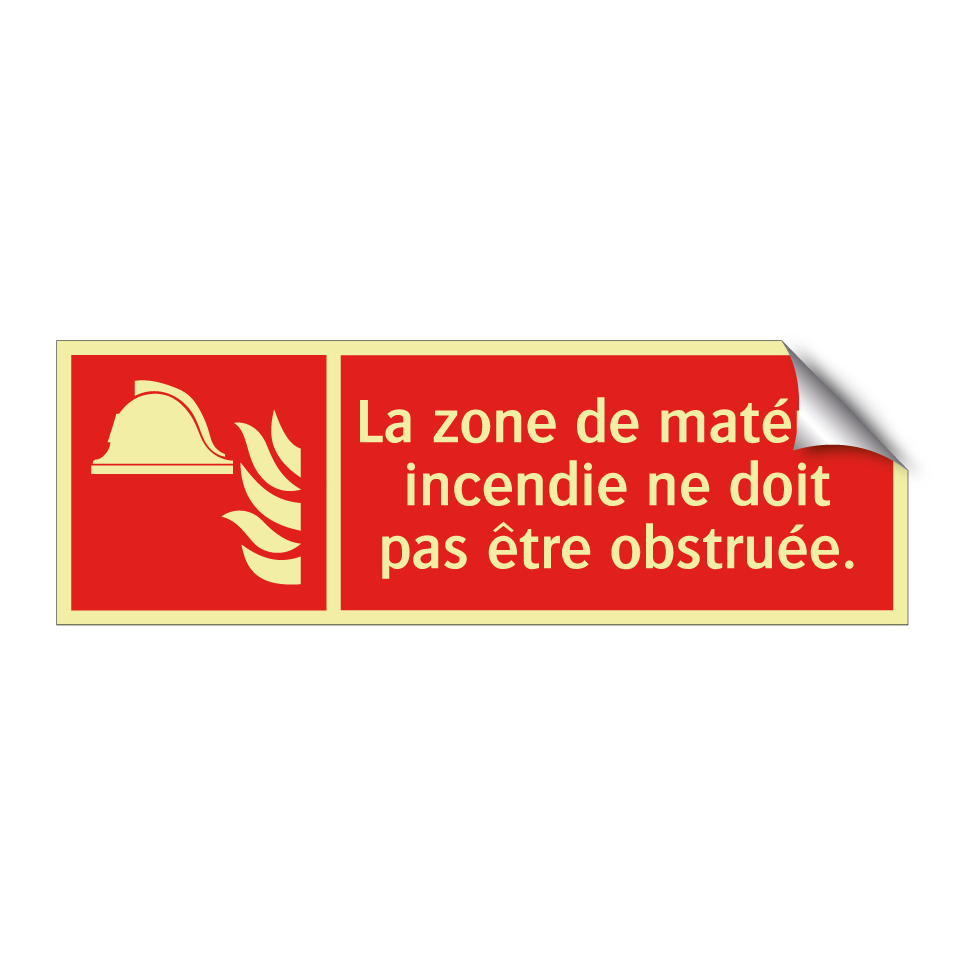 Panneau incendie avec le texte La zone de matériel incendie ne doit pas être obstruée. et une symbolique claire