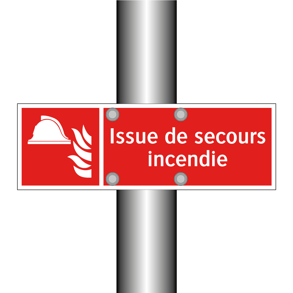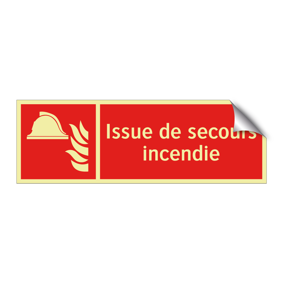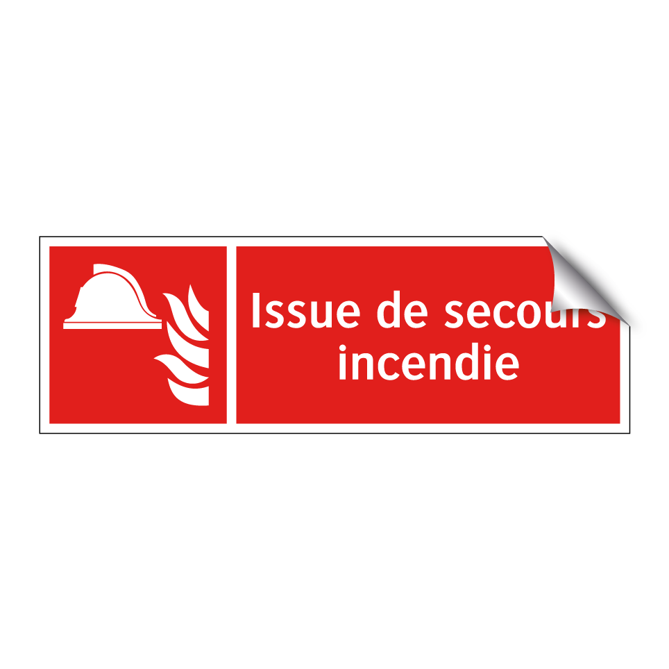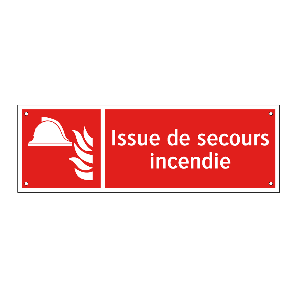 Panneau incendie avec le texte Issue de secours incendie et une symbolique claire