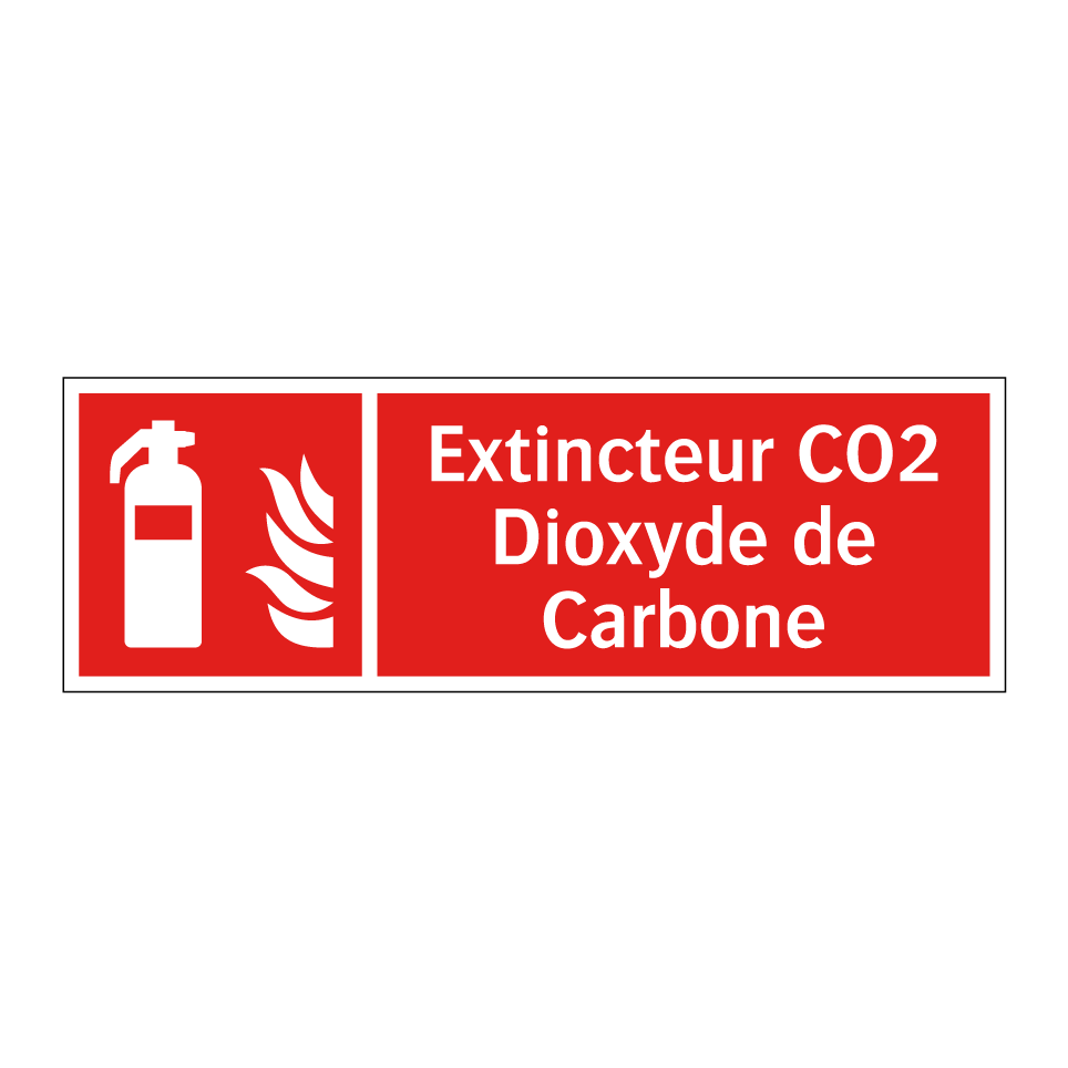Panneau incendie avec le texte Extincteur CO2 Dioxyde de Carbone et une symbolique claire