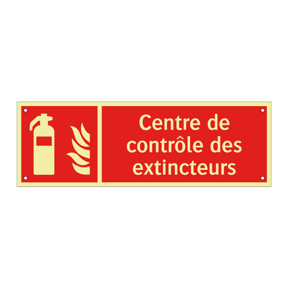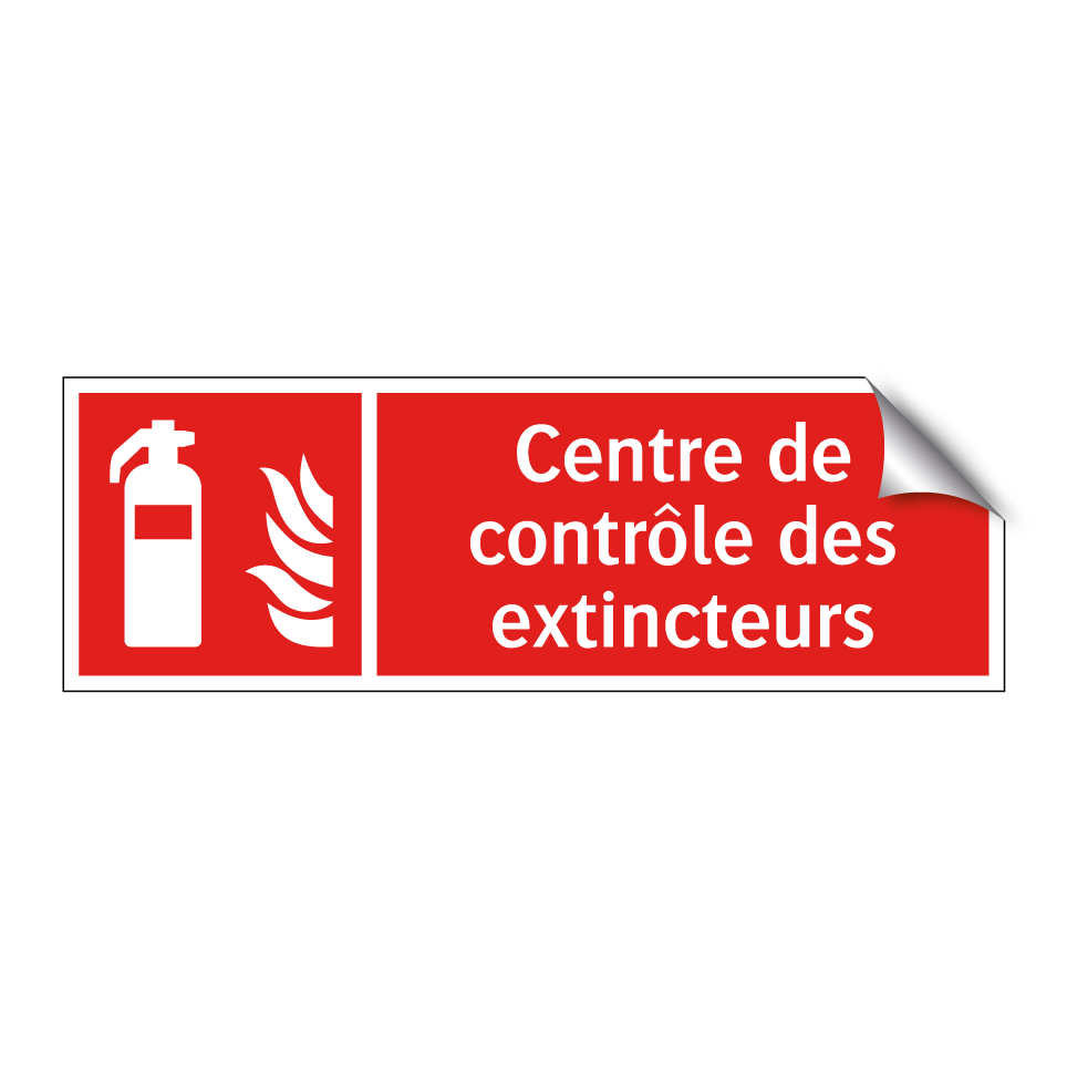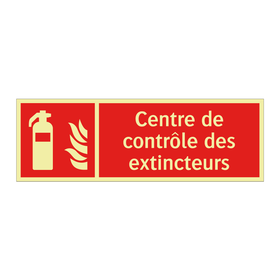 Panneau incendie avec le texte Centre de contrôle des extincteurs et une symbolique claire