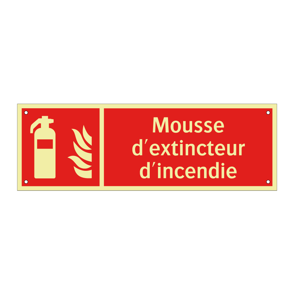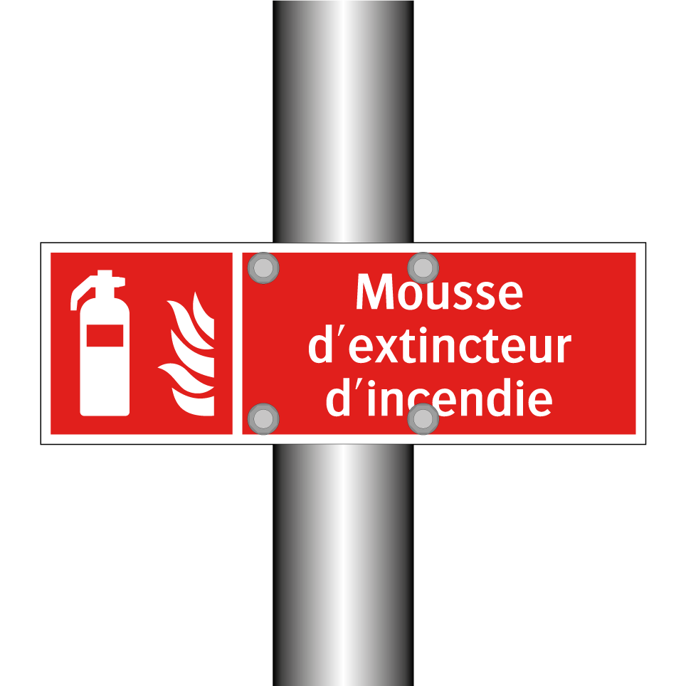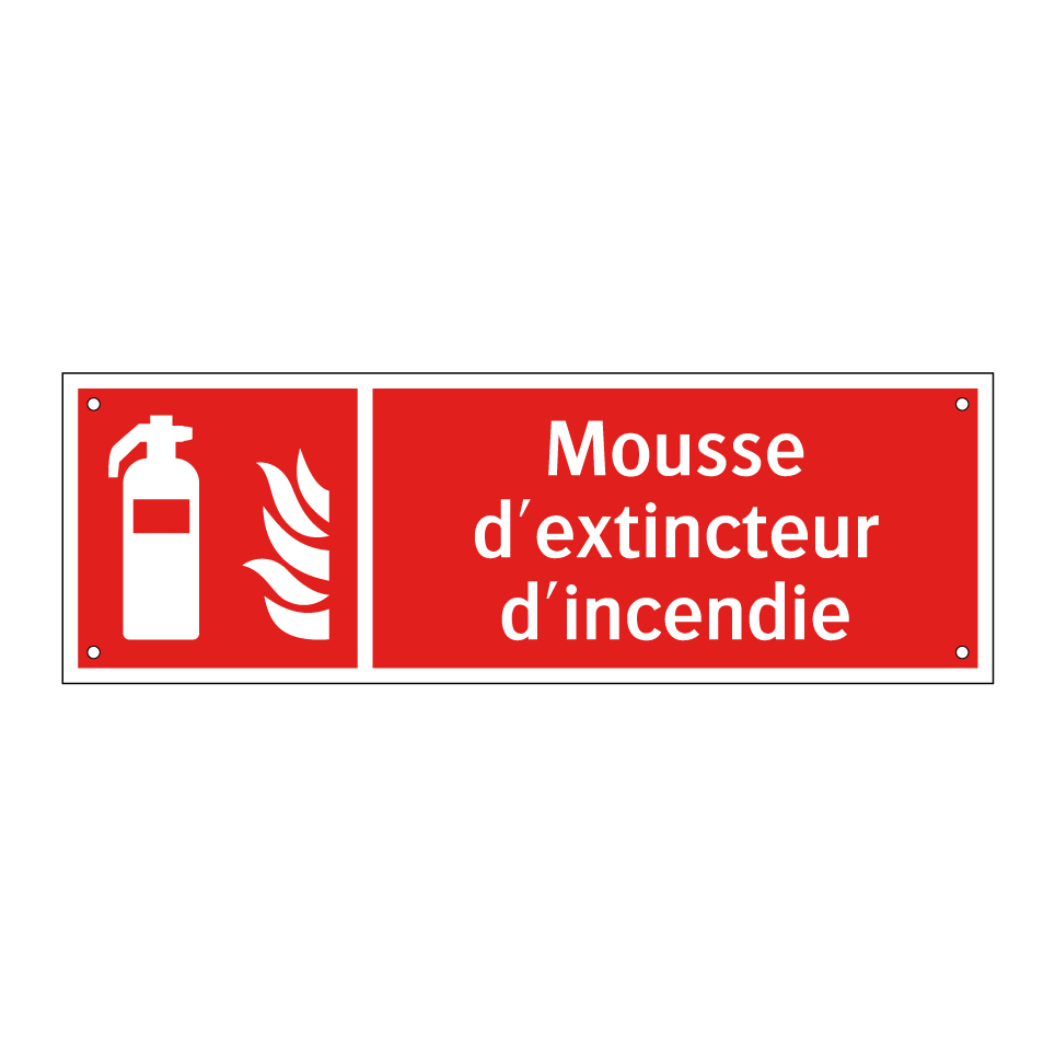 Panneau incendie avec le texte Mousse d'extincteur d'incendie et une symbolique claire