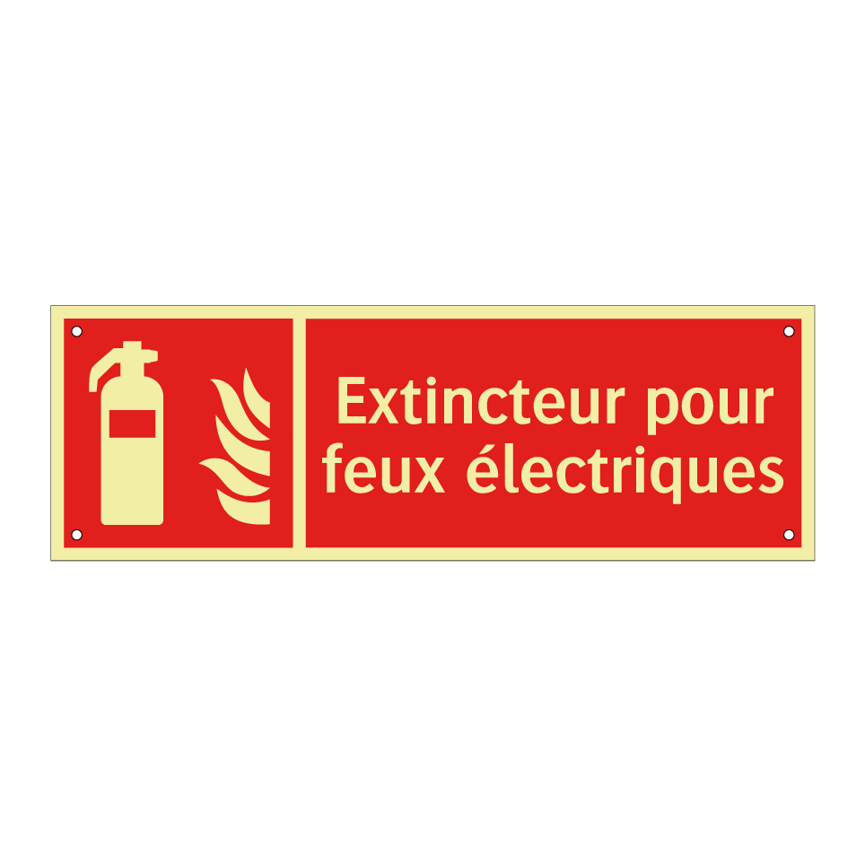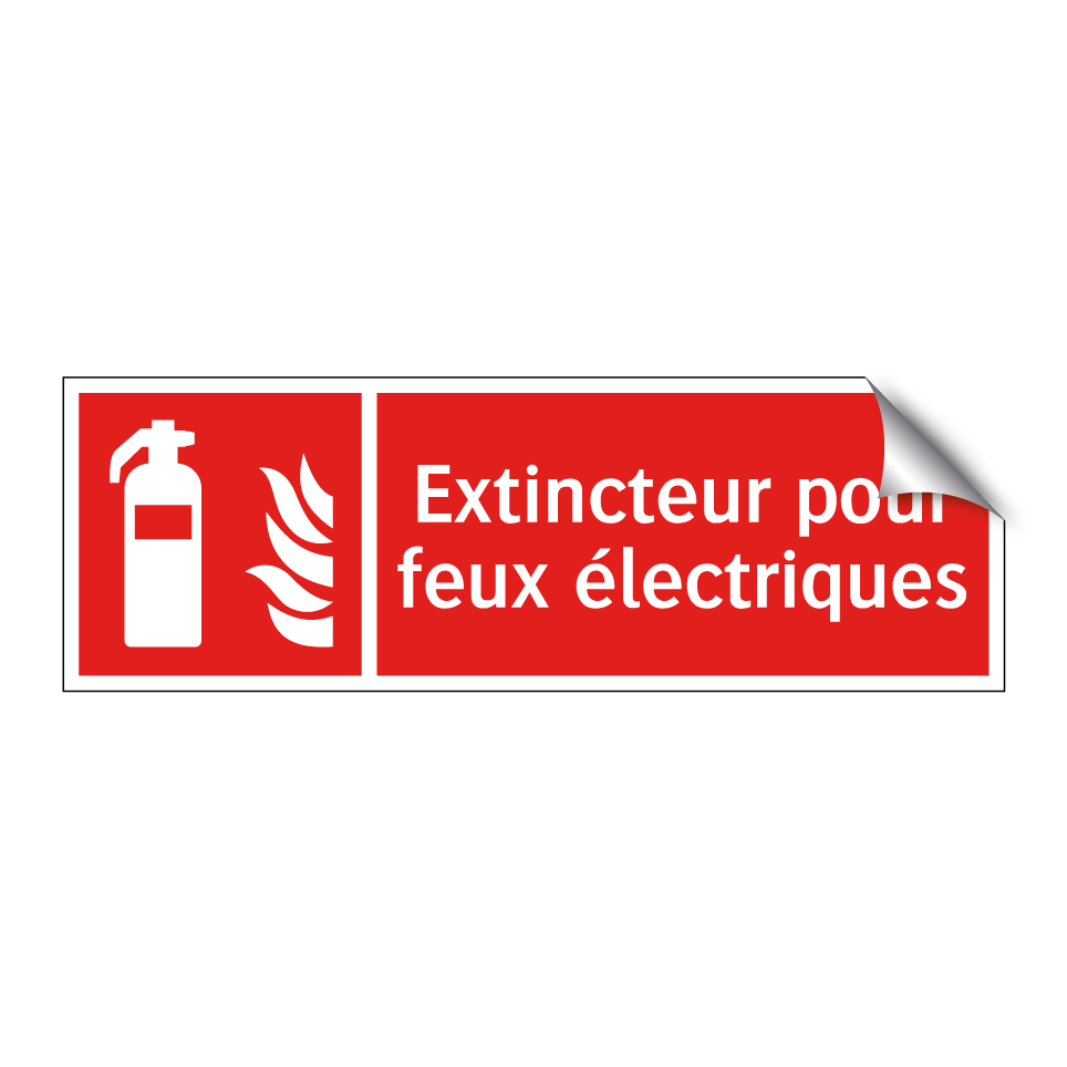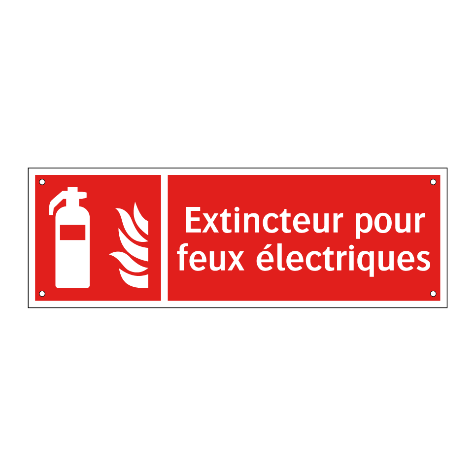 Panneau incendie avec le texte Extincteur pour feux électriques et une symbolique claire