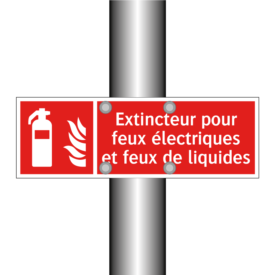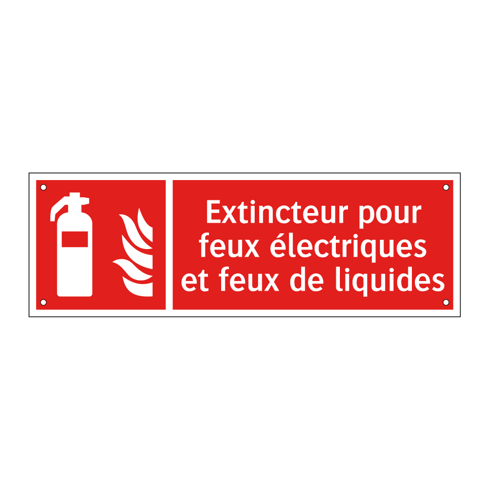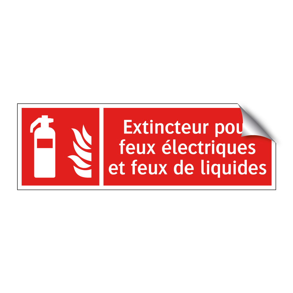 Panneau incendie avec le texte Extincteur pour feux électriques et feux de liquides et une symbolique claire