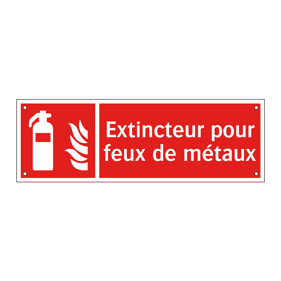 Panneau incendie avec le texte Extincteur pour feux de métaux et une symbolique claire