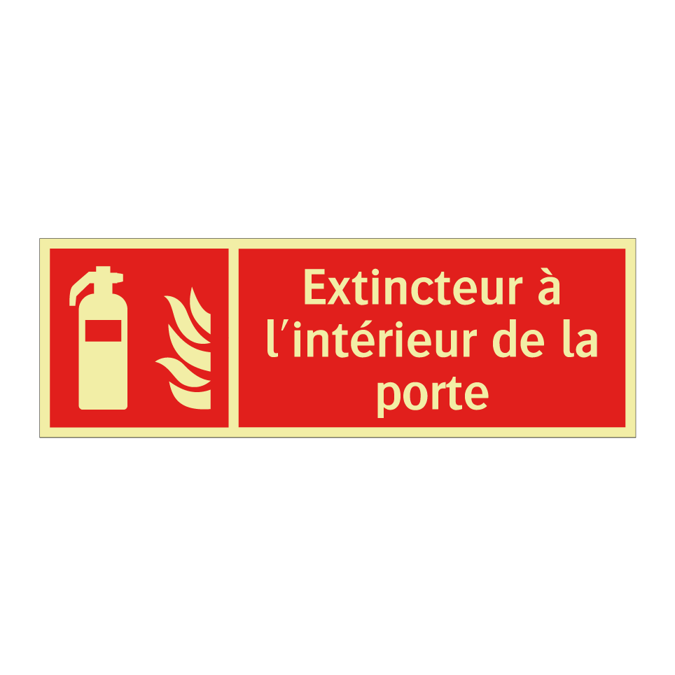 Panneau incendie avec le texte Extincteur à l'intérieur de la porte et une symbolique claire