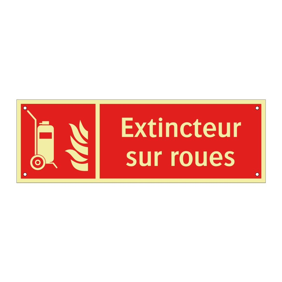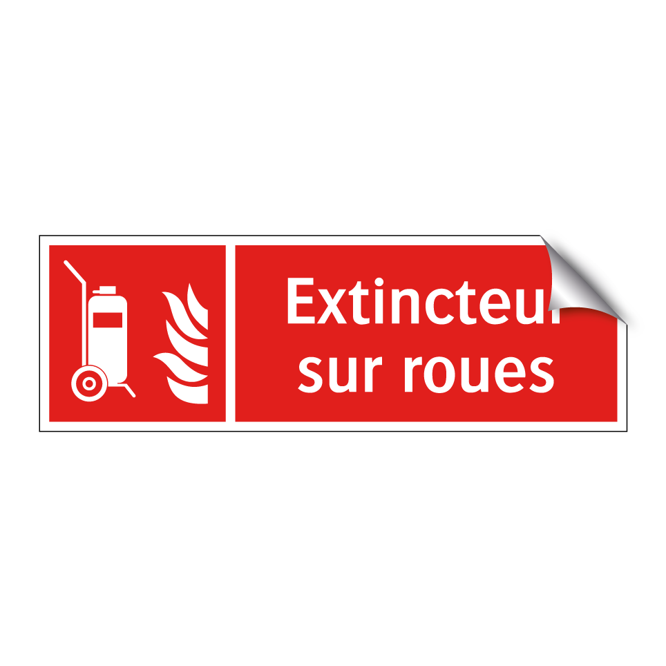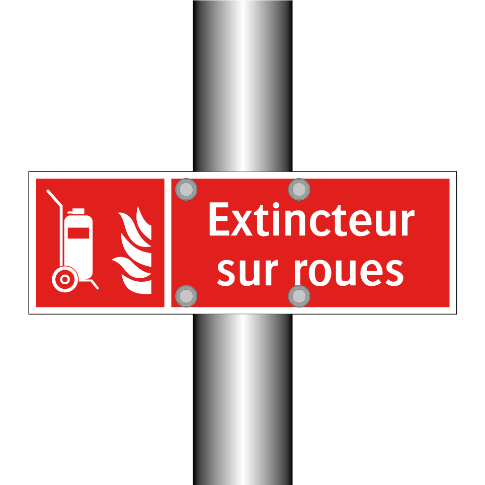 Panneau incendie avec le texte Extincteur sur roues et une symbolique claire