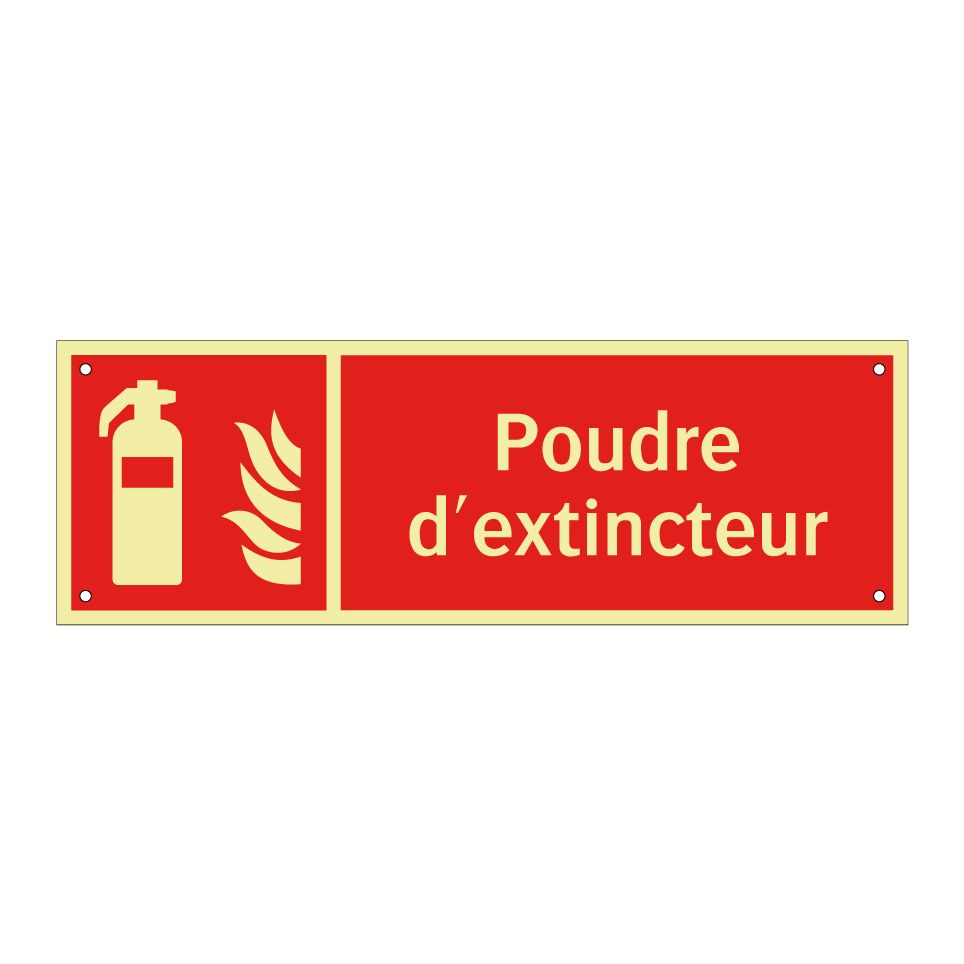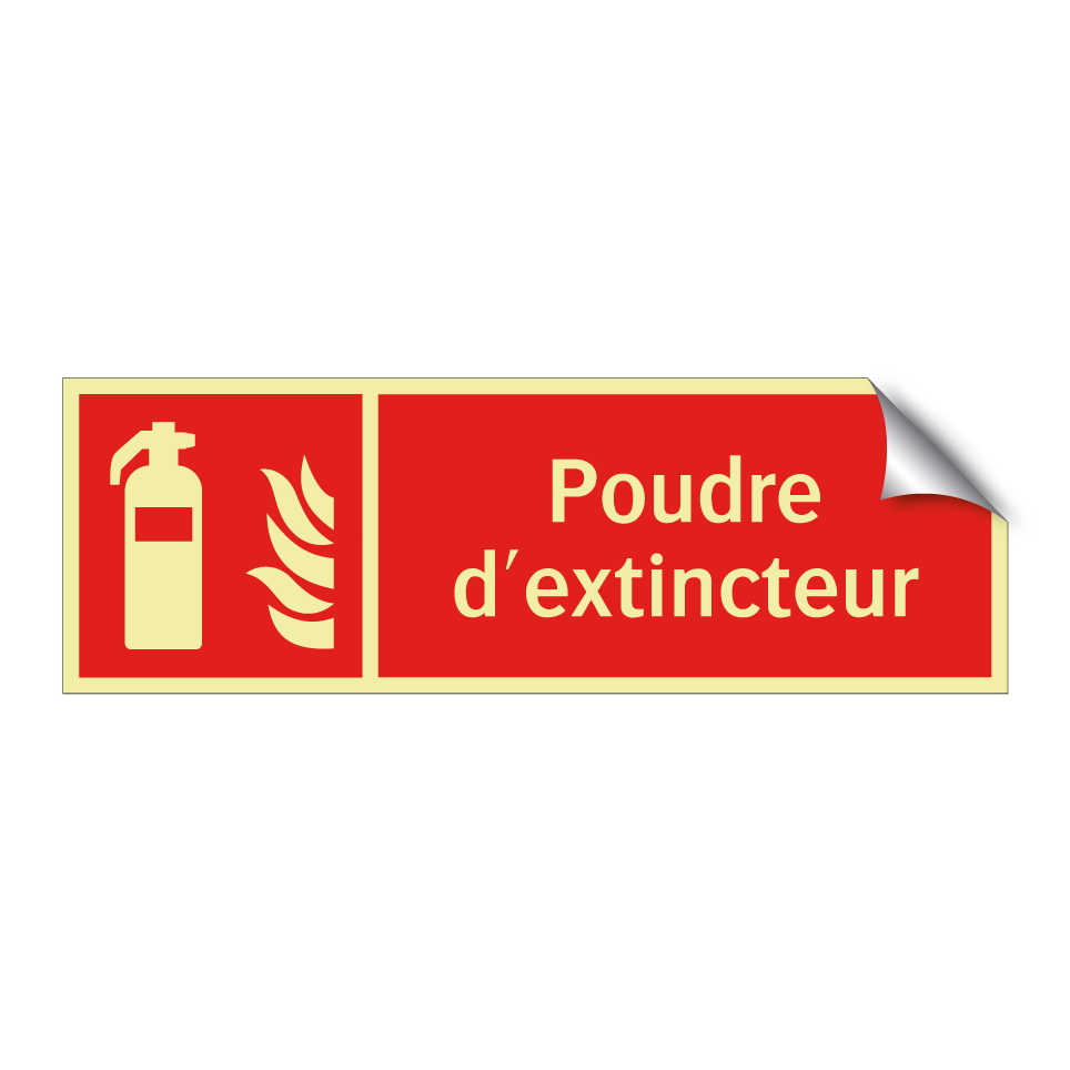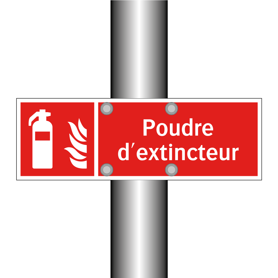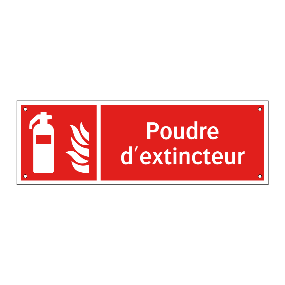 Panneau incendie avec le texte Poudre d'extincteur et une symbolique claire