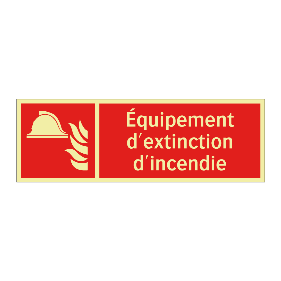 Panneau incendie avec le texte Équipement d'extinction d'incendie et une symbolique claire
