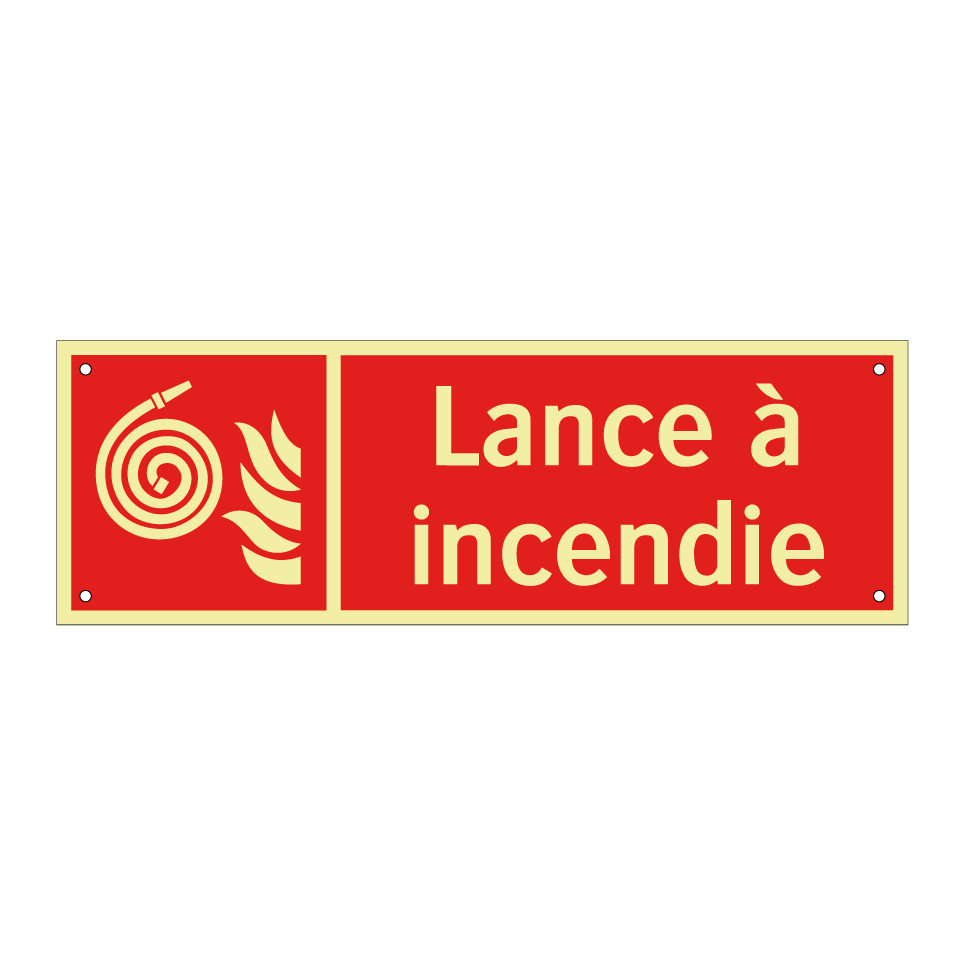 Panneau incendie avec le texte Lance à incendie et une symbolique claire