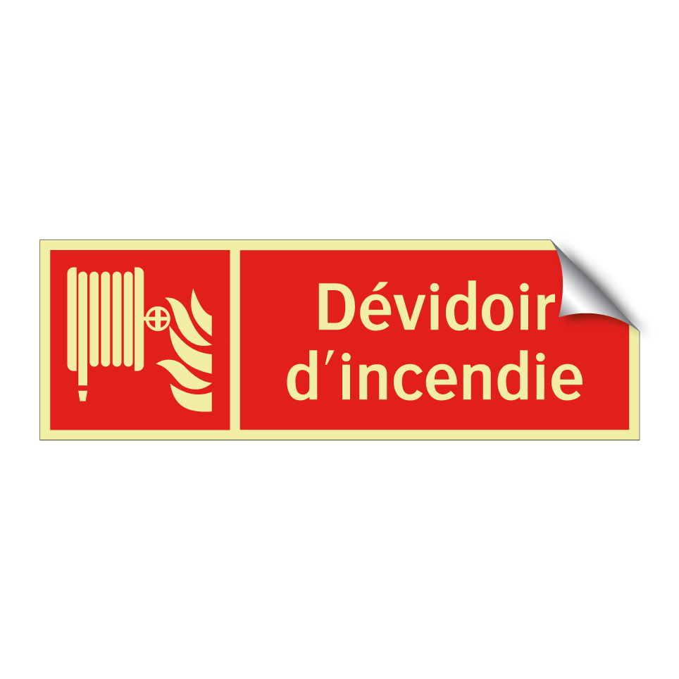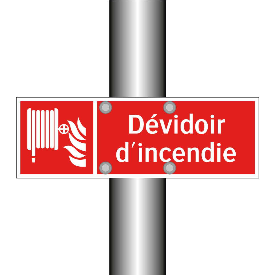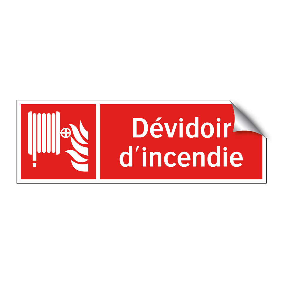 Panneau incendie avec le texte Dévidoir d'incendie et une symbolique claire