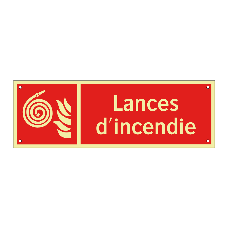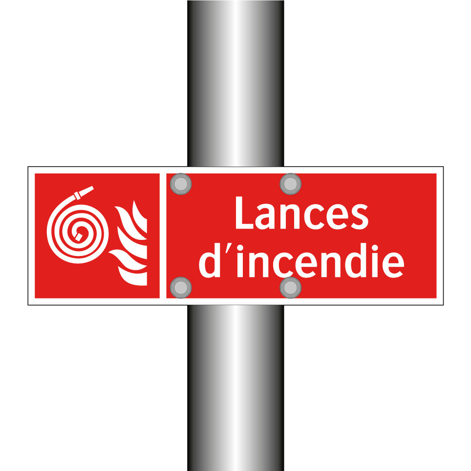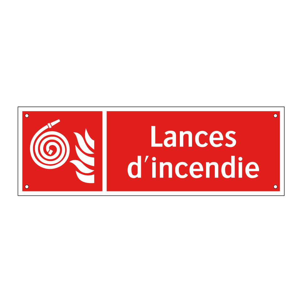 Panneau incendie avec le texte Lances d'incendie et une symbolique claire