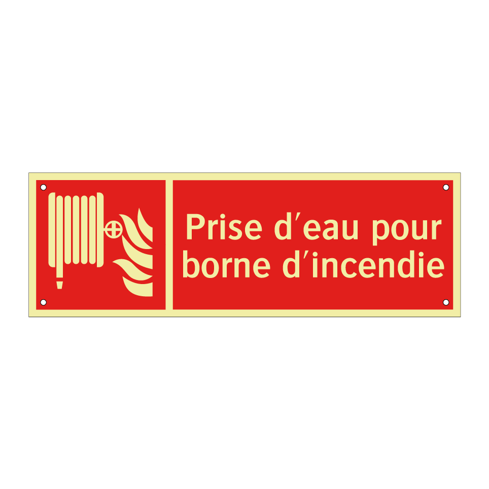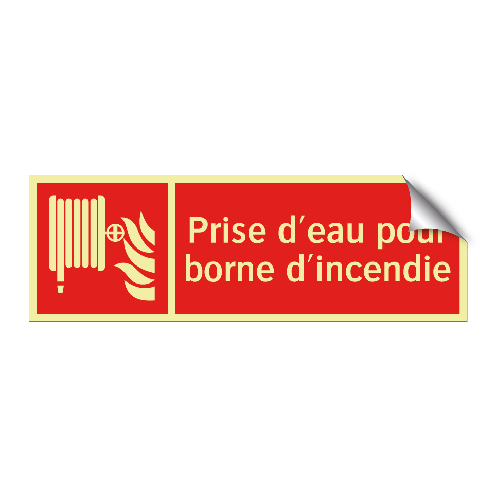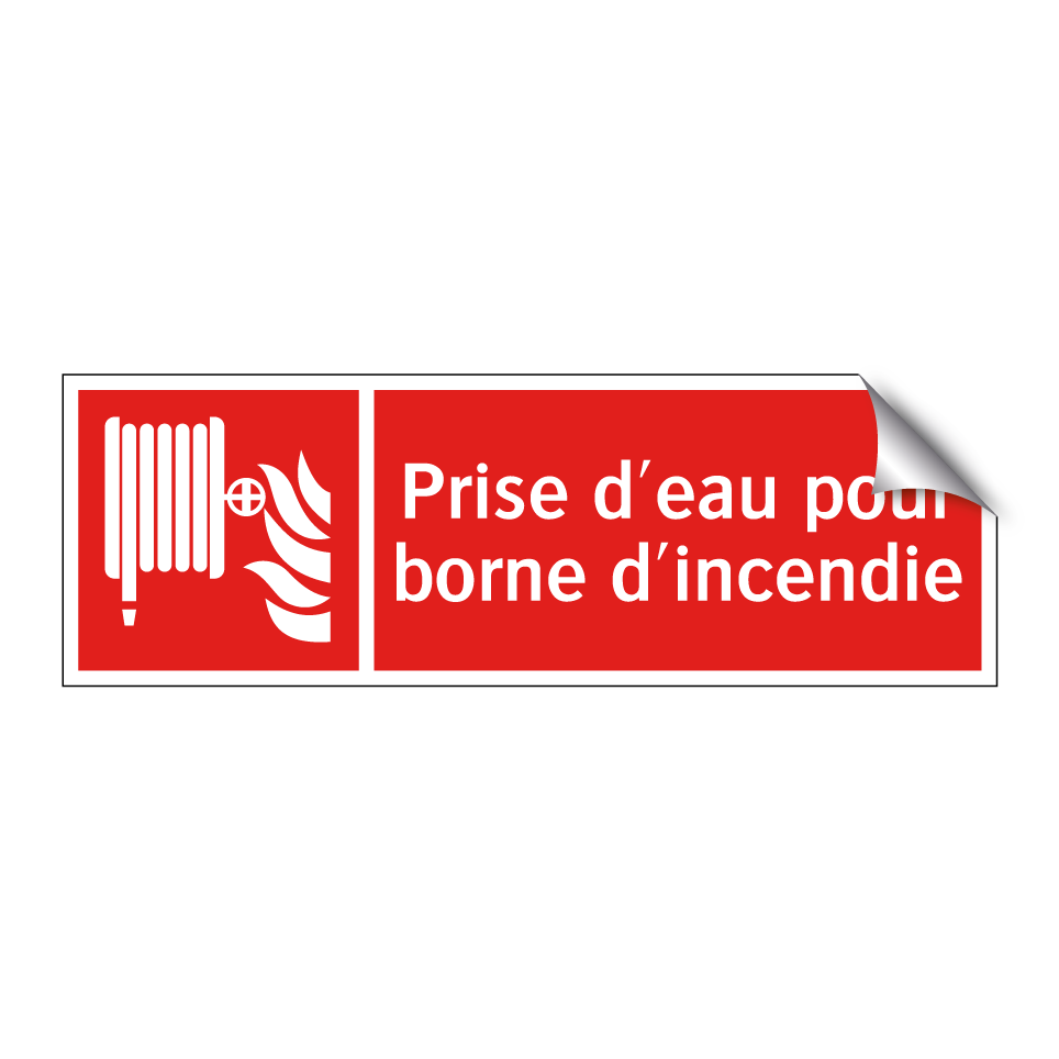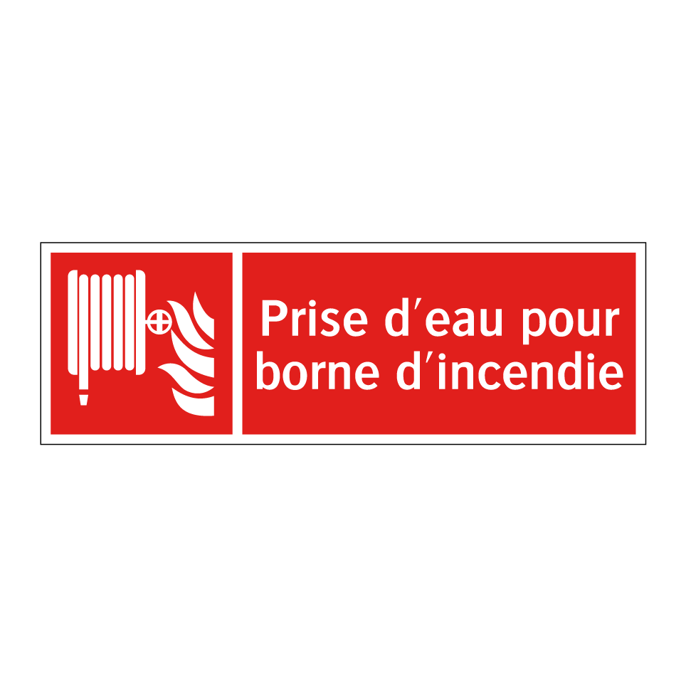 Panneau incendie avec le texte Prise d'eau pour borne d'incendie et une symbolique claire