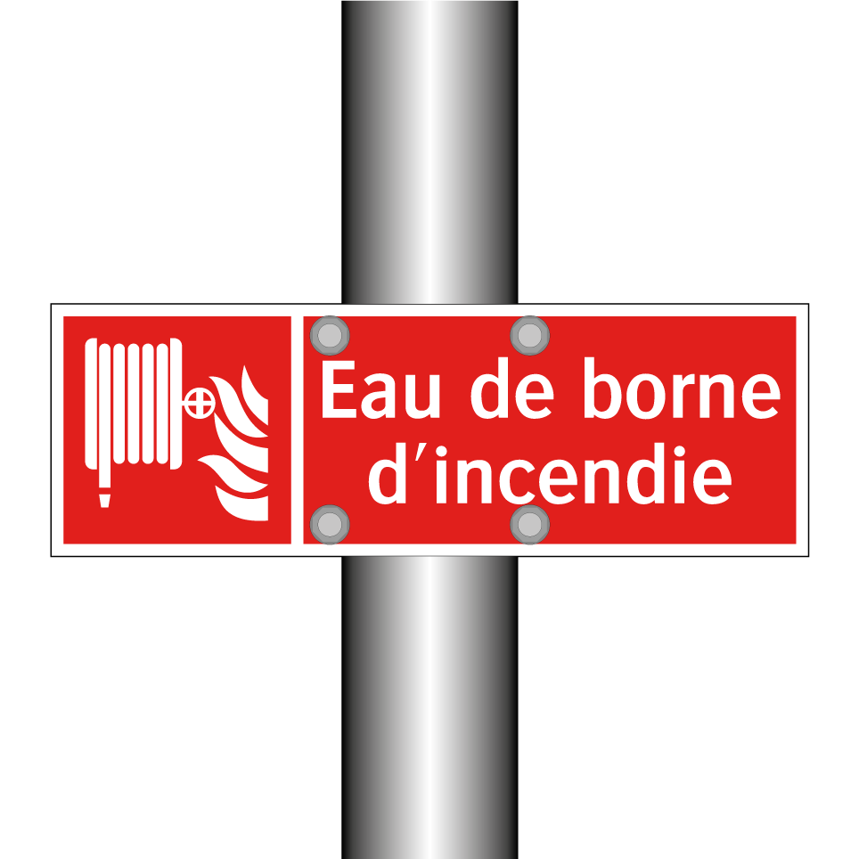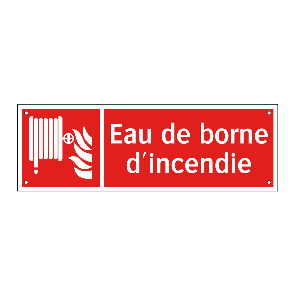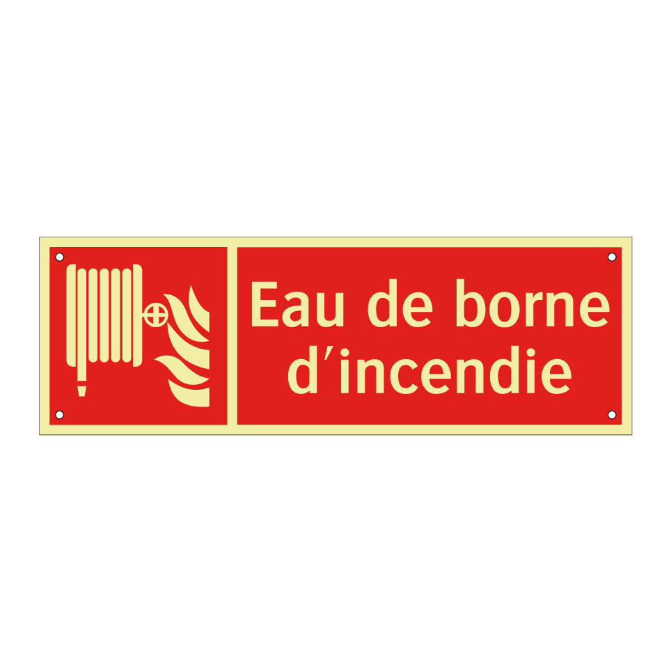 Panneau incendie avec le texte Eau de borne d'incendie et une symbolique claire