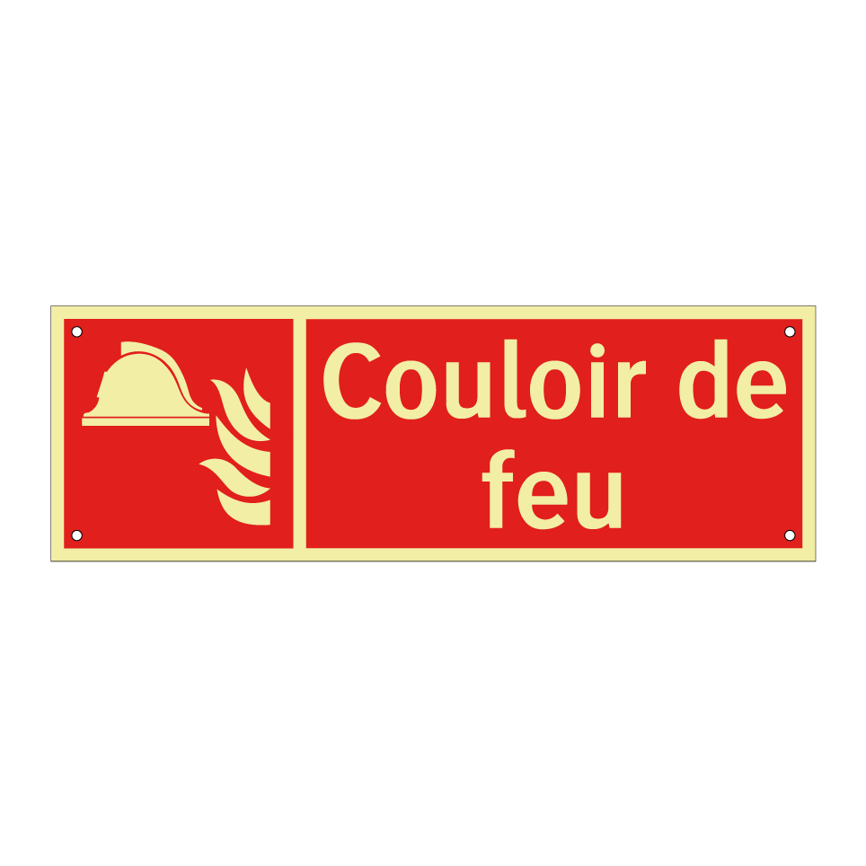 Panneau incendie avec le texte Couloir de feu et une symbolique claire
