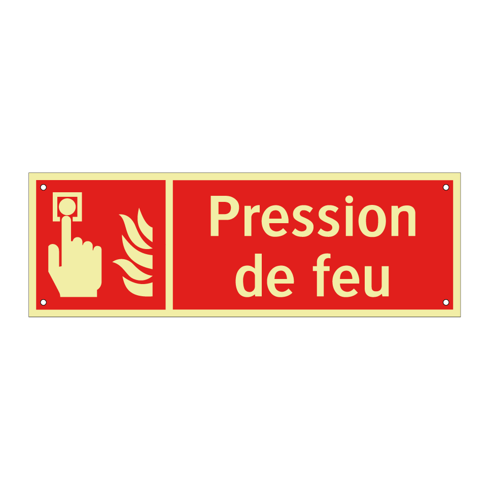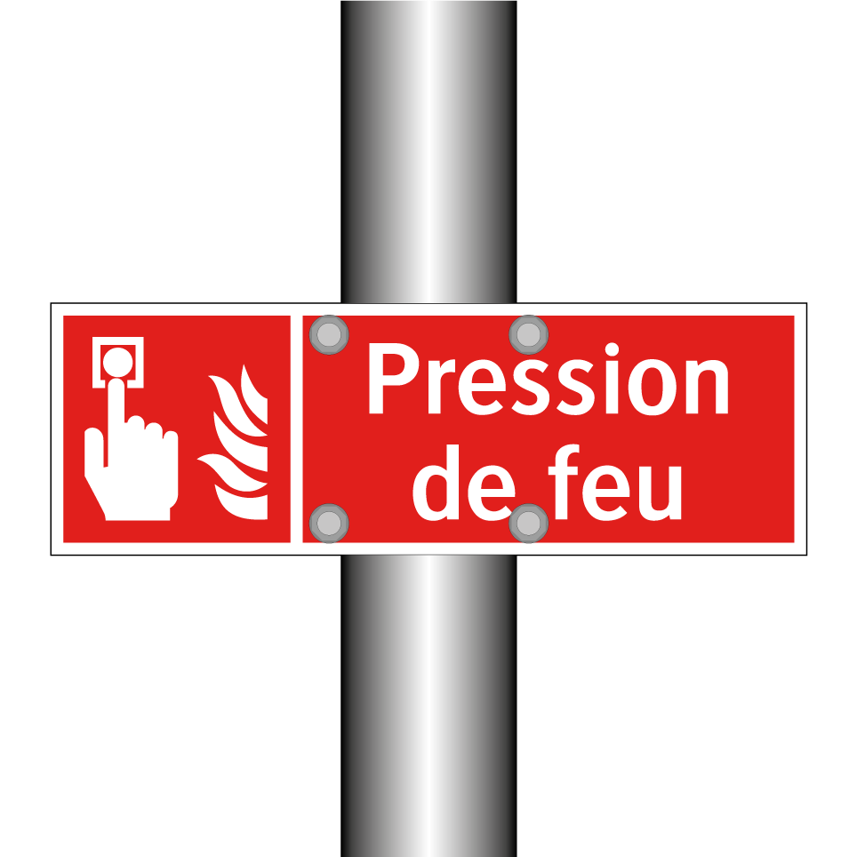 Panneau incendie avec le texte Pression de feu et une symbolique claire