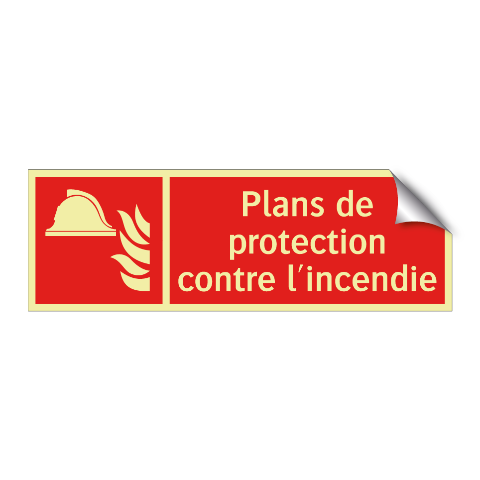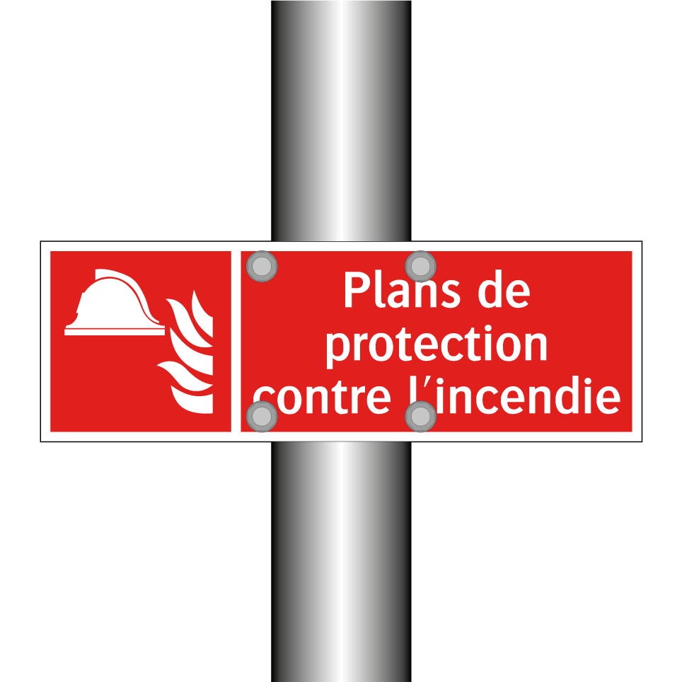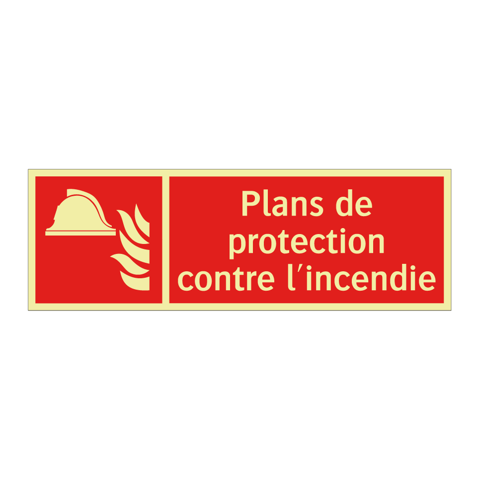 Panneau incendie avec le texte Plans de protection contre l'incendie et une symbolique claire