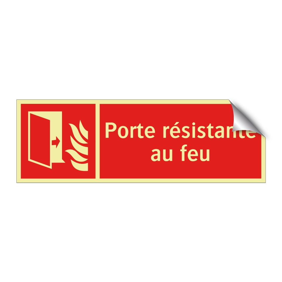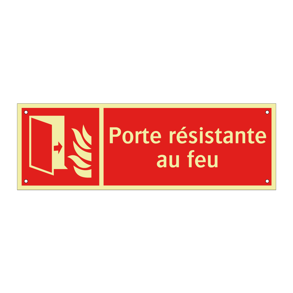 Panneau incendie avec le texte Porte résistante au feu et une symbolique claire