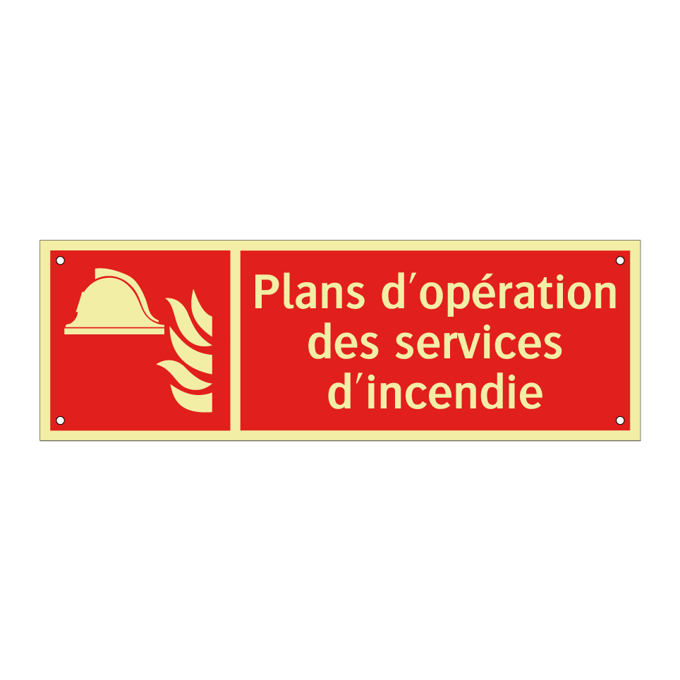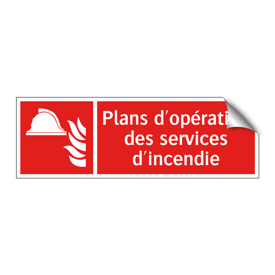 Panneau incendie avec le texte Plans d'opération des services d'incendie et une symbolique claire