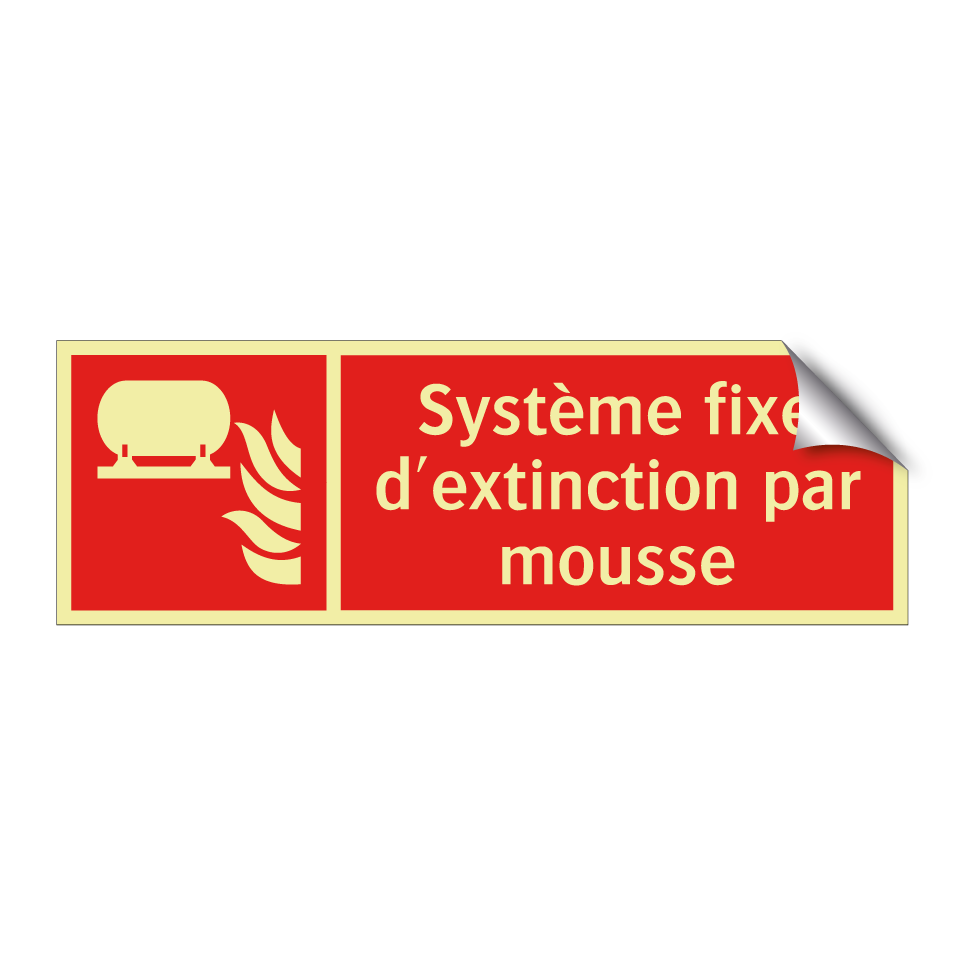 Panneau incendie avec le texte Système fixe d'extinction par mousse et une symbolique claire