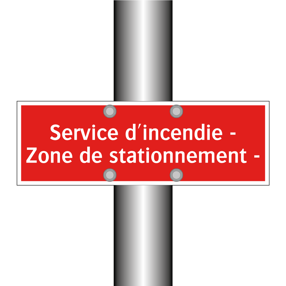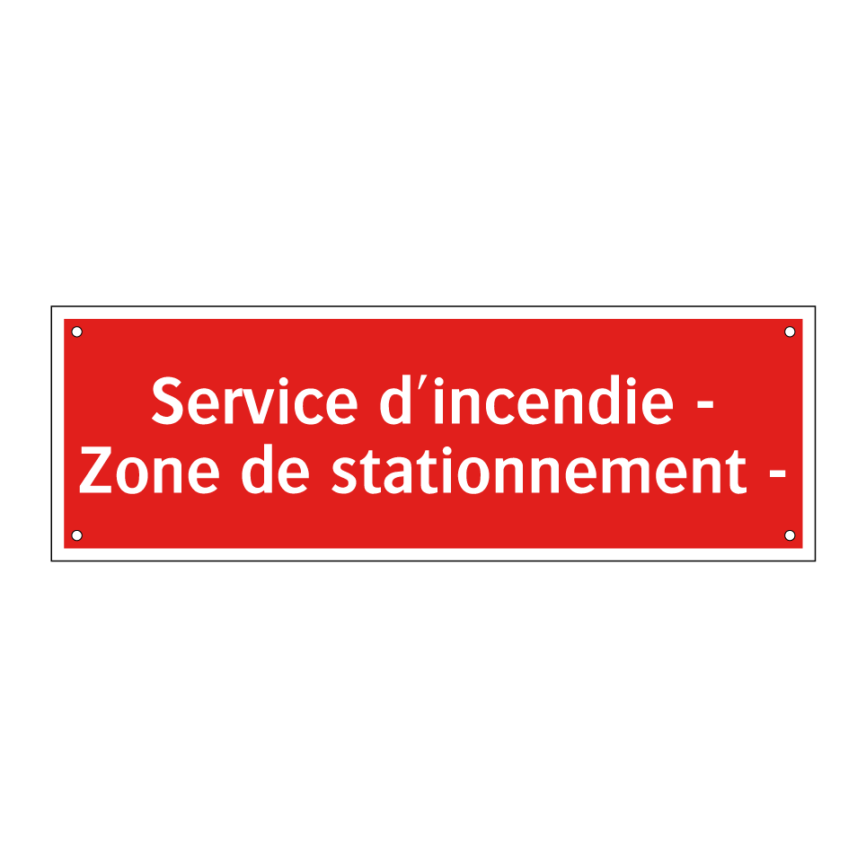 Panneau de signalisation incendie avec le texte Service d'incendie - Zone de stationnement -