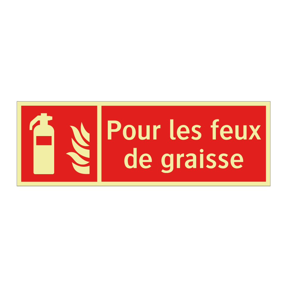 Panneau incendie avec le texte Pour les feux de graisse et une symbolique claire
